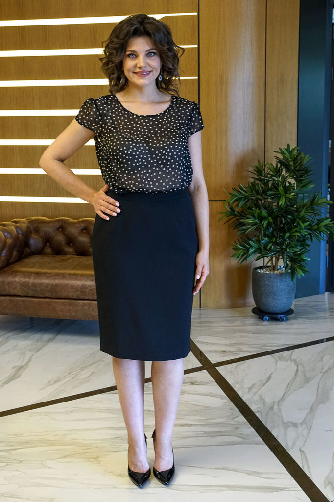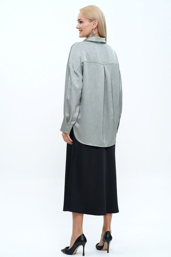 Состав: Костюм: ПЭ-95% Спандекс-5% Блуза: ПЭ-100% Лаконичный крой, модные цвета и идеальная   посадка делают этот комплект-тройку актуальным во все времена!  Жакет полуприлегающего силуэта с цент... Показать описаниеральной застежкой на одну пробивную петлю и пуговицу. Перед с рельефными швами, с горизонтальными карманами с клапаном и двумя обтачками. Спинка со средним швом и рельефными швами, выходящими от линии проймы. Рукава втачные, двухшовные, низ декорирован пришивной пуговицей. Воротник – втачная стойка. Жакет на подкладке и с плечевыми накладками. Блуза полуприлегающего силуэта с фигурной линией низа. Перед с нагрудными вытачками. Застежка по центру горловины спинки на навесную петлю и пуговицу. Рукава – крылышко со сборкой по окату. Юбка зауженная к низу, на притачном поясе, застегивающемся на одну  петлю и пуговицу. Застежка в среднем шве заднего полотнища на потайную тесьму-молнию. Переднее полотнище с талиевыми вытачками. Заднее полотнище с талиевыми вытачками и средним швом, заканчивающимся шлицей. Юбка на подкладке. Размерный ряд: 44 46 48 50 52 54 56 58 Жакет Длина изделия (по среднему шву спинки) 57 57 58 58 58 58 58 60 Ширина изделия (на уровне глубины проймы) 1/2 46 48 50 52 53 55 57 59 Ширина спинки 35,5 36,5 37,5 38,5 39,5 40,5 41,5 42,5 Ширина переда 33 34 35 36 36,5 37,5 38,5 39,5 Длина рукава  62 62 62 62 62 62 62 62 Ширина рукава (на уровне глубины проймы) 1/2 16,3 17 17,7 18.4 19,6 20,3 21,0 21,7 Ширина изделия (по линии талии) 1/2 39 41 43 45 48 50 52 54 Ширина изделия (по линии низа) 1/2 48 50 52 54 57 59 61 63 Ширина плеча 11,0 11,2 11,4 11,4 11,2 11,4 11,6 11,5 Юбка Длина юбки от талии ( по среднему шву заднего полотнища) 57,5 57,5 57,5 59,5    63 63 63    65 Ширина юбки (по линии бедер)1/2 48,5 50,5 53 55 57  59    61    63 Ширина изделия ( по линии талии)1/2 37 39 41 43 48    50    52  54 Блуза Длина изделия (по среднему шву спинки) 59 59 59 61 61  61  61  63 Ширина изделия (на уровне глубины проймы) 1/2 46 48 50 52 54  56  58  60 Ширина спинки 36 37 38 39 39,5 40,5 41,5 42,5 Ширина переда 31 32 33 34 36 37 38 39 Ширина изделия (по линии талии) 1/2 46 48 50 52 53,5  55,5  57,5 59,5 Ширина изделия (по линии бедер) 1/2 48,5 50,5 52,5 54,5 58 60 63 65 Ширина плеча 7,7 7,8 7,9      8,0 12 12 12 12