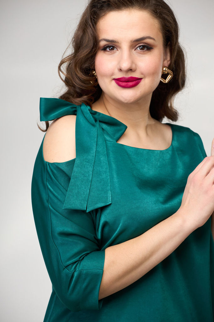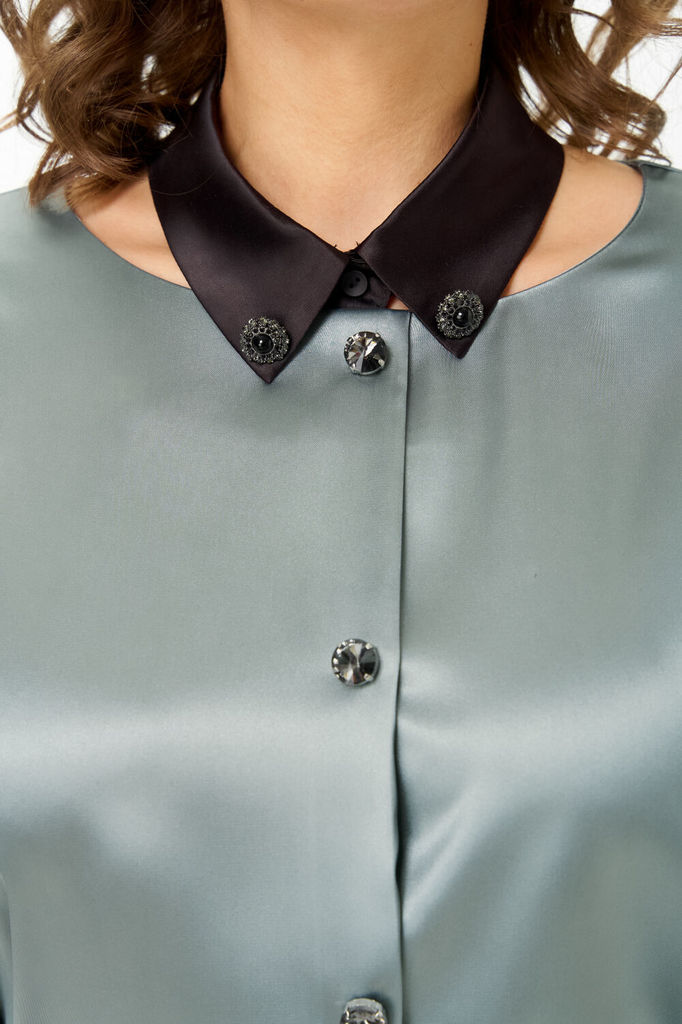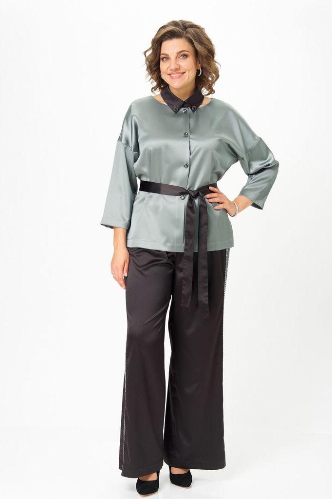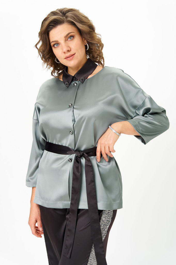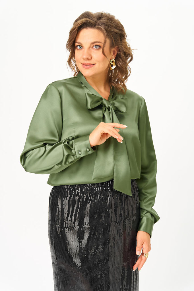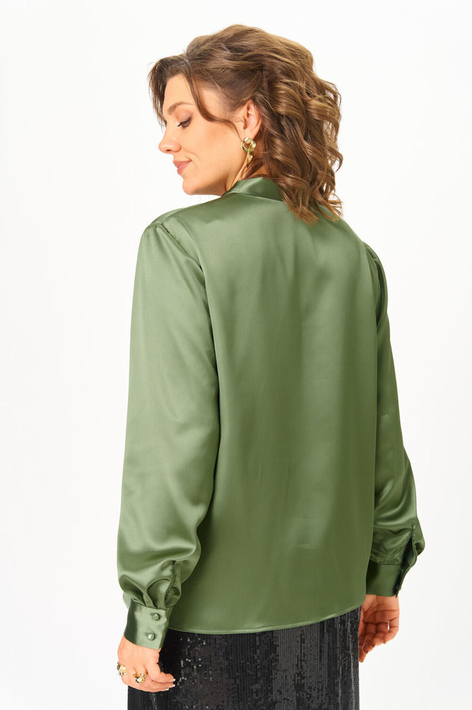 Состав: ПЭ-100%; Оливковая женская блузка-рубашка из лёгкой атласной ткани с изысканным бантом над вырезом представляет собой гармоничное сочетание деловой элегантности и романтичного шарма. Прямой св... Показать описаниеободный силуэт обеспечивает комфорт в течение всего дня, сохраняя при этом аккуратный и утончённый вид. Треугольный вырез с изящными завязками, превращающимися в модный бант на груди, добавляет образу ноту женственности, делая его одновременно строгим и нежным. Длинный рукав с элегантной манжетой на пуговице позволяет регулировать посадку. Лёгкий тонкий атлас добавляет луку воздушности, сохраняя при этом необходимую для офиса сдержанность. Особенностью этой модели является её универсальность - представленная в больших размерах, она подчёркивает достоинства фигуры разного типа. Блузка-рубашка одинаково хорошо смотрится как в строгом деловом ансамбле, так и в более романтичных повседневных, праздничных и стильных образах. Таблица измерений изделия в готовом виде М 5042 Наименование измерений/размер 50 52 54 56 58 60 Ширина по линии груди 56 58 60 62 64 66 Ширина по линии бёдер 57 59 61 63 65 67 Длина изделия по спинке 65 65 65 65 65 65 Длина рукава 63 63 63 63 63 63 Допустимые отклонения +-1-1,5 см