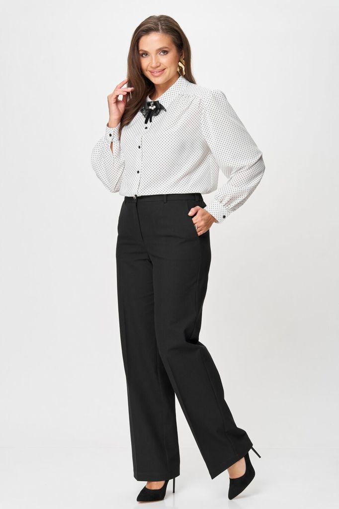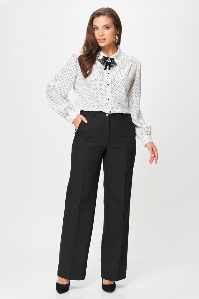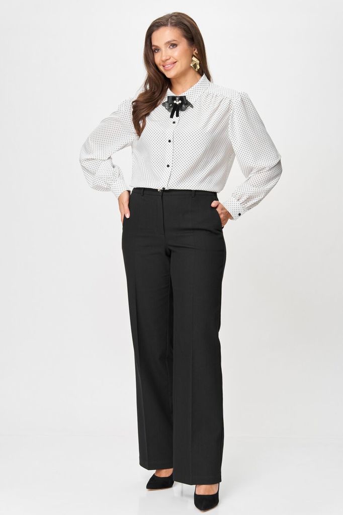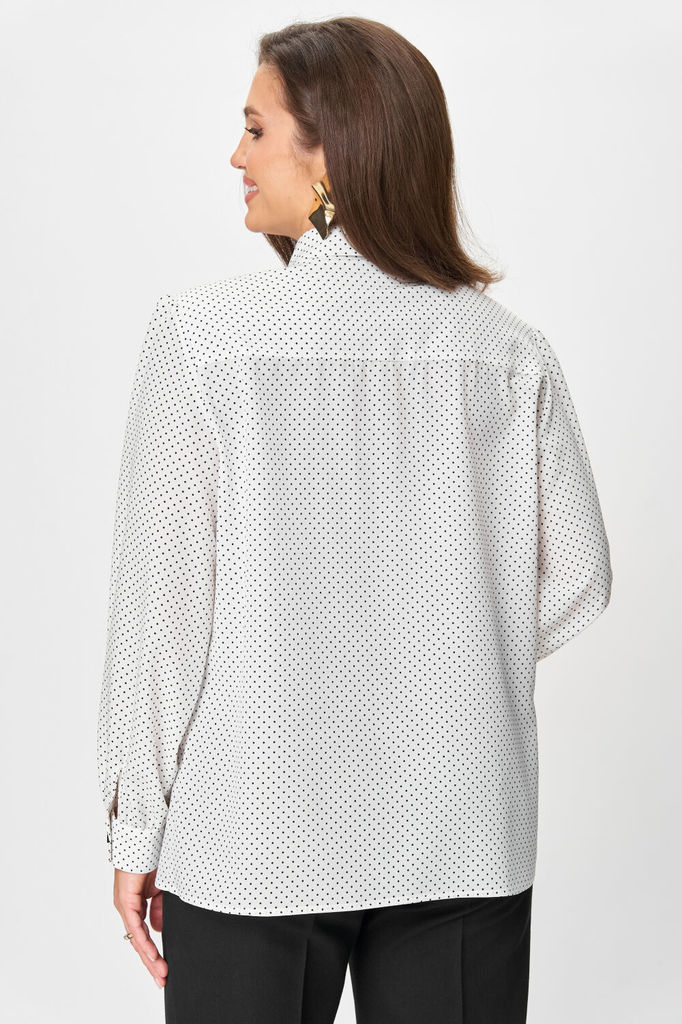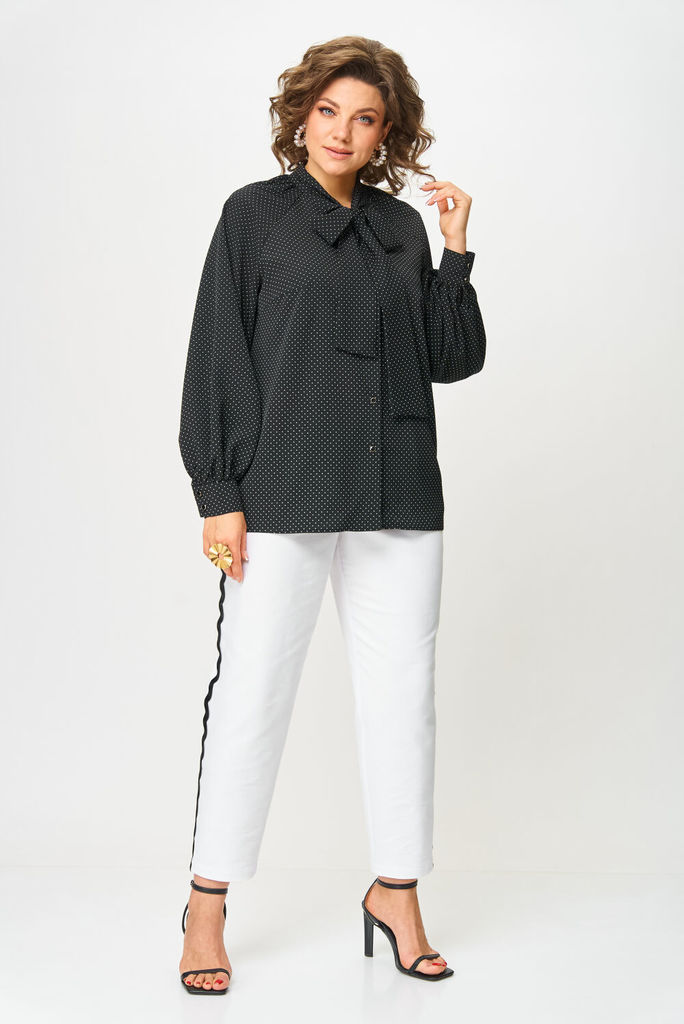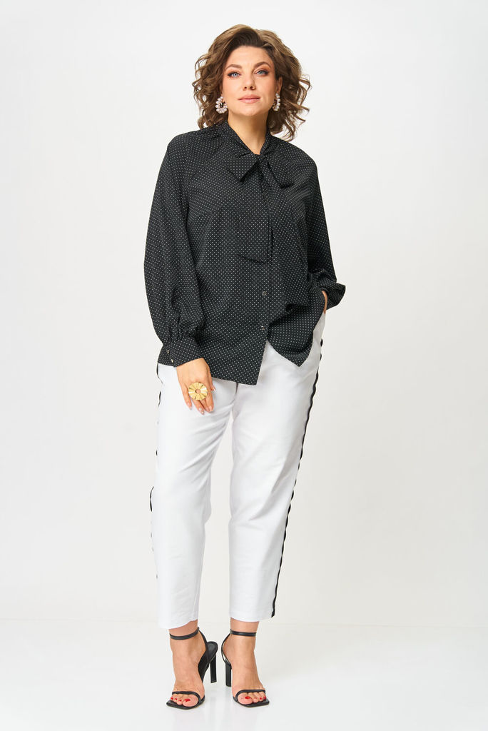 Состав: ПЭ-100%; Элегантная женская блузка из чёрного крепа в белый горошек - классического кроя, с воротником-аскот и эффектным длинным рукавом покроя реглан на манжете. Блузка с застёжкой спереди на... Показать описание пуговицы, с V-образной горловиной и воротником-стойкой с удлинёнными концами, которые завязываются на бант. Модная блузка станет любимой вещью в вашем гардеробе, поможет создать строгий, но при этом стильный образ, прекрасно сочетается с брюками, юбками и может носиться как самостоятельный предмет гардероба или под жакет, жилет, кардиган. Таблица измерений изделия в готовом виде М 5038 Наименование измерений/размер 50 52 54 56 58 60 62 64 Ширина по линии груди 54 56 58 60 62 64 66 68 Ширина по линии бёдер 57 59 61 63 65 67 69 71 Длина изделия по спинке 68 68 68 68 68 68 68 68 Длина рукава от горловины 75 75 75 75 75 75 75 75 Допустимые отклонения +-1-1,5 см
