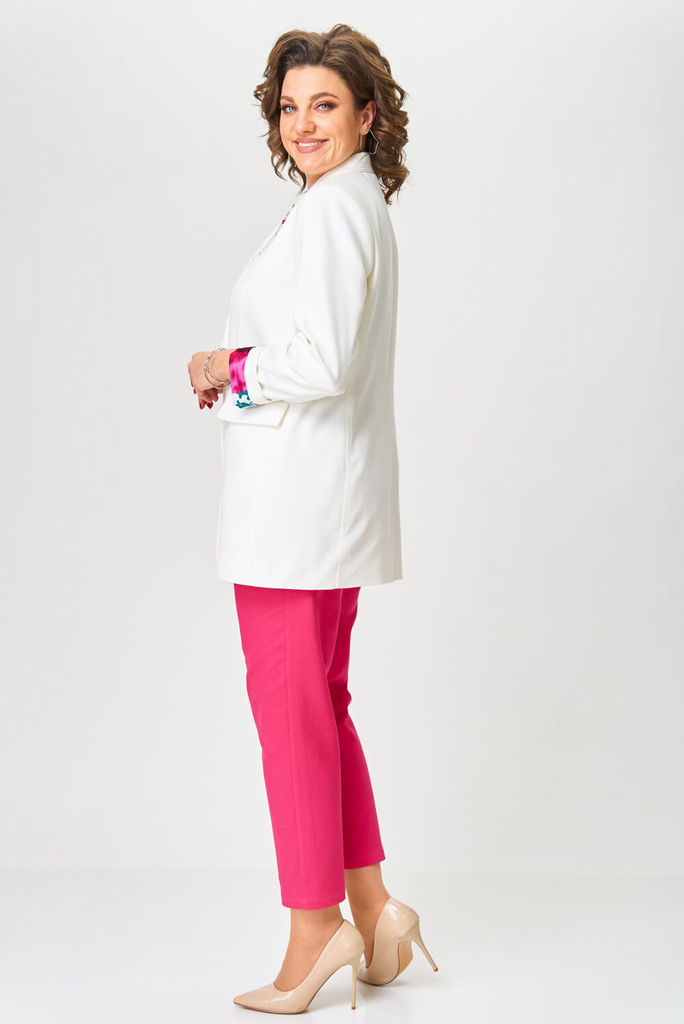 Состав: ПЭ-96%; Лайкра-4%; Красивый женский жакет не оставит равнодушной ни одну модницу! Полуприлегающий классический покрой подчеркнет достоинства фигуры, он идеально подойдет для создания разнообра... Показать описаниезных нарядов на каждый день благодаря универсальности и стильному дизайну. Жакет с застёжкой спереди на петли и пуговицы, с пиджачным воротником и втачными двухшовными рукавами. По переду выполнены боковые прорезные карманы с клапанами и нагрудный накладной карман с нашивкой, спинка со швами. Таблица измерений изделия в готовом виде М 4014 Наименование измерений/размер 50 52 54 56 58 60 Ширина по линии груди 54 56 58 60 62 64 Ширина по линии бёдер 58 60 62 64 66 68 Длина изделия по спинке 70 70 70 70 70 70 Длина рукава 62 62 62 62 62 62 Допустимые отклонения +-1-1,5 см