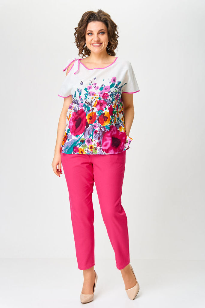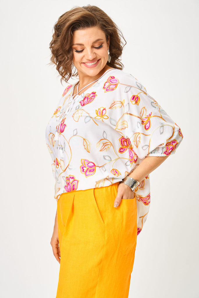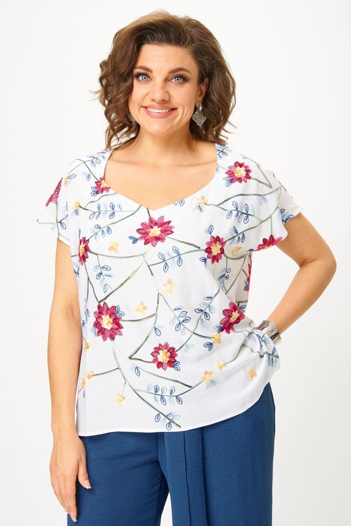 Состав: Вискоза-100%; Модная женская блузка с вышитым цветочным принтом и коротким рукавом— находка для тех, кто ценит удобство и элегантность. Лёгкая, свободная модель c V –образным вырезом горловины... Показать описание, рукавом на спущенной линии проймы, выполнена из приятной к телу вискозы, идеальна для лета и весны. Благодаря классической посадке и удлинённой спинке, она скрывает нюансы фигуры, а декоративный элемент по линии горловины украшает силуэт, создавая женственный акцент. Таблица измерений изделия в готовом виде М 5036 Наименование измерений/размер 52 54 56 58 60 62 Ширина по линии груди 63 65 67 69 71 73 Ширина по линии бёдер 63 65 67 69 71 73 Длина изделия по спинке 66 66 66 68 68 68 Длина рукава от горловины 46 46 46 46 46 46 Допустимые отклонения +-1-1,5 см
