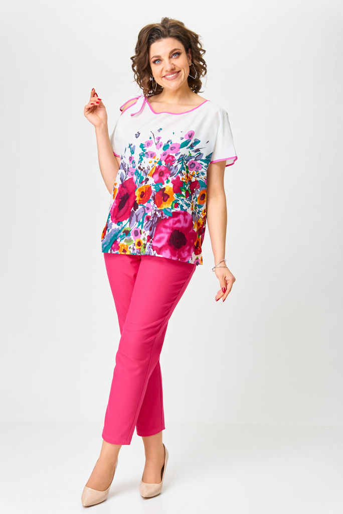 Состав: Вискоза-24%; ПЭ-74%; Спандекс-2%; Блузка женская прямого силуэта, выполнена из трикотажного полотна. Горловина круглой формы, рукав одношовный. Горловина и рукав обработаны декоративной бейкой... Показать описание. Таблица измерений изделия в готовом виде М 3014 Наименование измерений/размер 50 52 54 56 58 60 62 64 Ширина по линии груди 55 57 59 61 63 65 67 69 Ширина по линии бёдер 56 58 60 62 64 66 68 70 Длина изделия по спинке 56 56 56 56 56 59 59 59 Длина рукава от горловины 20 20 20 20 20 20 20 20 Допустимые отклонения +-1-1,5 см