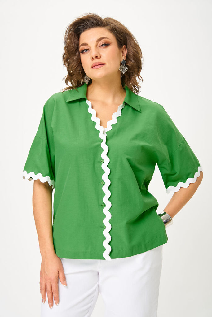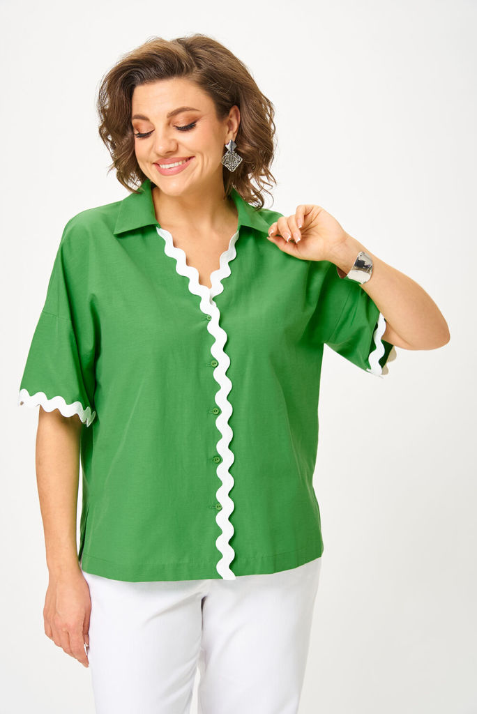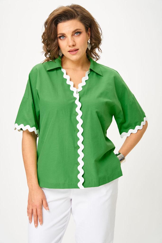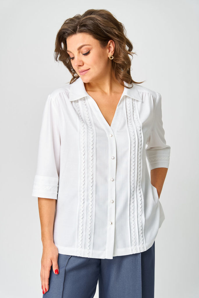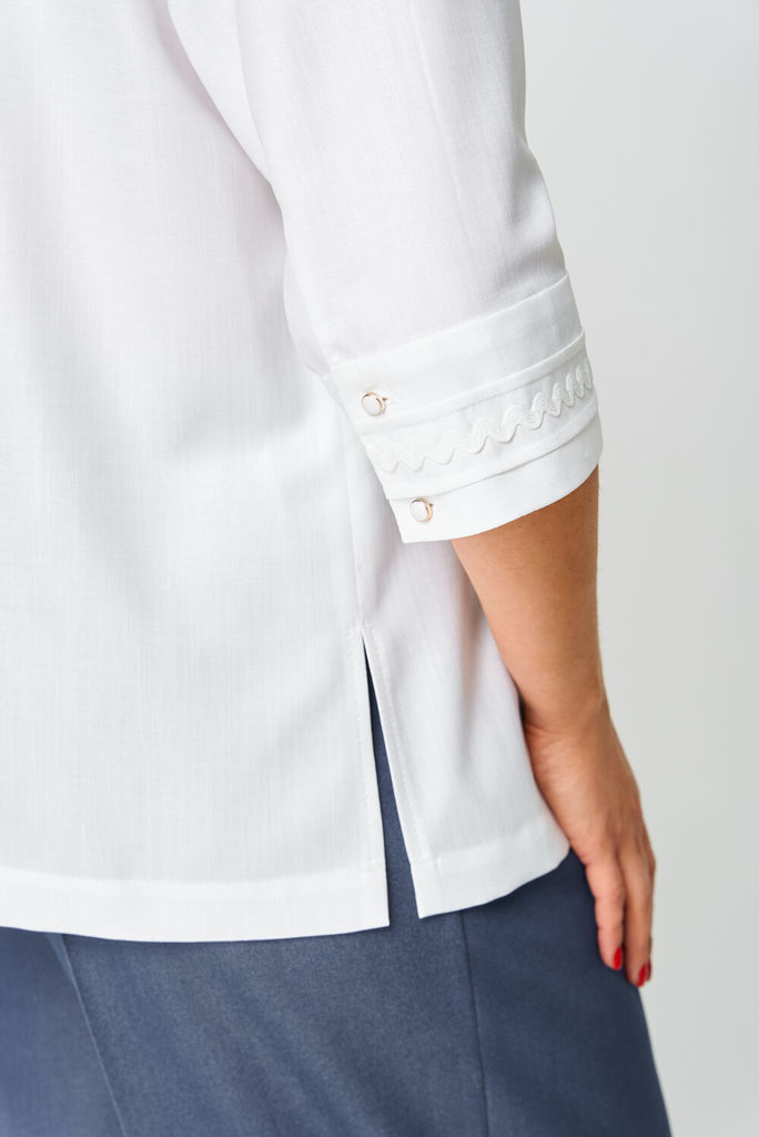 Состав: ПЭ-85%; Хлопок-15%; Женская блузка с отделкой и тесьмой по переду, с втачными рукавами, идеальный выбор для современных женщин, ценящих комфорт и стиль. Свободный крой предоставляет свободу дв... Показать описаниеижений и делают модель еще более удобной. Блузка имеет V-образный вырез горловины, отложной воротник, широкие рукава длины 3/4. Данная модель - идеальный выбор для женщин размера Plus size, прекрасно сочетается с различными типами низа, что позволяет легко комбинировать ее с любыми предметами гардероба. Ткань блузки не мнется, приятная на ощупь. Блузка стильная и элегантная, идеально подойдет для работы, учебы или отдыха, обеспечивая комфорт и стиль вне зависимости от обстоятельств. Таблица измерений изделия в готовом виде М 5033 Наименование измерений/размер 50 52 54 56 58 60 Ширина по линии груди 56 58 60 62 64 66 Ширина по линии низа 59 61 63 65 67 69 Длина изделия по спинке 65 65 65 65 65 65 Длина рукава 39 39 39 39 39 39 Допустимые отклонения +-1-1,5 см