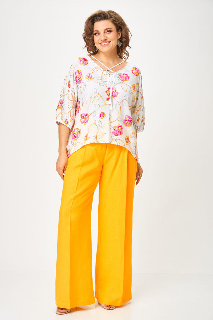 Состав: ПЭ-94%; Спандекс-6%; Блузка прямого кроя со съёмным поясом, это стильно и удобно. Яркая и женственная, она станет акцентом вашего гардероба. Свободный крой и рукава длины 3/4 создают утонченны... Показать описанией силуэт, который подчеркнет вашу фигуру. Дизайн блузки сочетает в себе классическую элегантность и модные тренды. Нежная дизайнерская вышивка добавляет образу легкости и изящества. Таблица измерений изделия в готовом виде М 5049 Наименование измерений/размер 50 52 54 56 58 60 62 64 Ширина по линии груди 57 59 61 63 65 67 69 71 Ширина по линии бёдер 58 60 62 64 66 68 70 72 Длина изделия по спинке 68 68 68 68 68 68 68 68 Длина рукава 49 49 49 49 49 49 49 49 Допустимые отклонения +-1-1,5 см