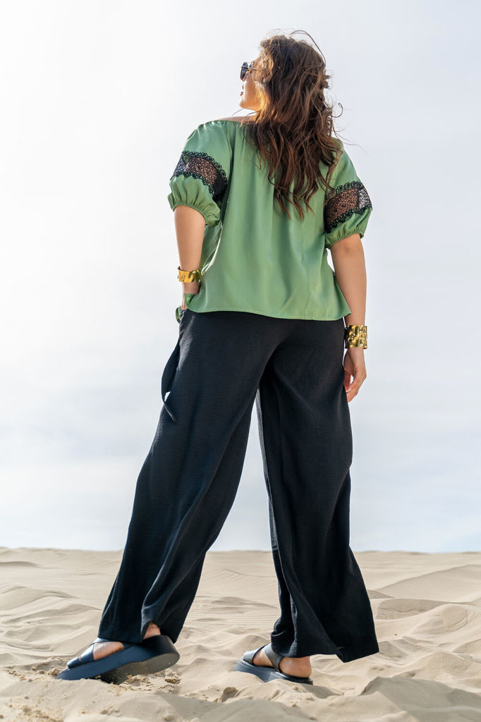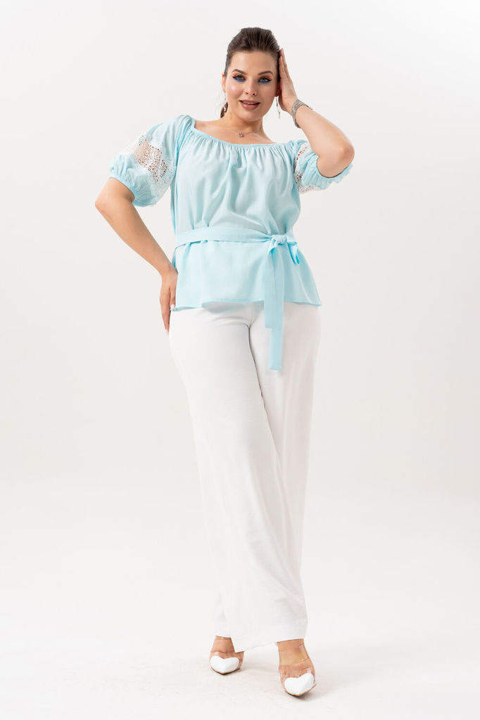 Состав: Вискоза-100%; Блузка женская с кружевными вставками – это идеальный выбор для создания стильных и комфортных образов на каждый день. Изготовленная из 100% вискозы, она невероятно приятна к тел... Показать описаниеу, дарит ощущение легкости и комфорта в течение всего дня. Стойка придает модели женственности и элегантности, рукава длины ? на спущенной пройме дают свободу движения, а свободный крой позволяет чувствовать себя комфортно и уверенно в любой ситуации. Блузка застегивается на пуговицы, что добавляет ей классический и утонченный вид. Таблица измерений изделия в готовом виде М 5034 Наименование измерений/размер 48 50 52 54 56 58 60 62 64 Ширина по линии груди 57 59 61 63 65 67 69 71 73 Ширина по линии низа 55 57 59 61 63 65 67 69 71 Длина изделия по спинке 64 64 64 64 64 64 64 64 64 Длина рукава от горловины 48 48 48 48 48 48 48 48 48 Допустимые отклонения +-1-1,5 см
