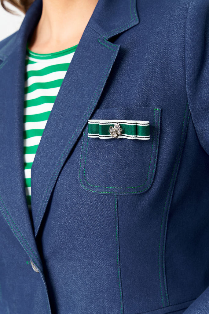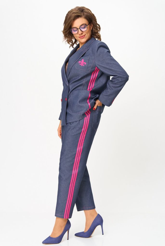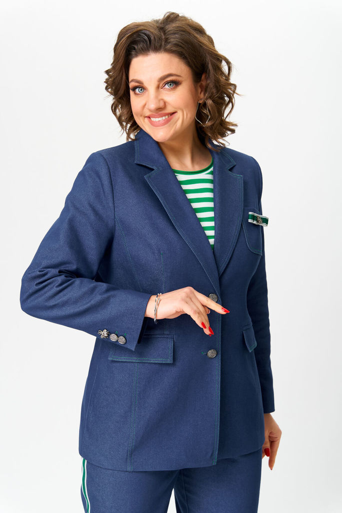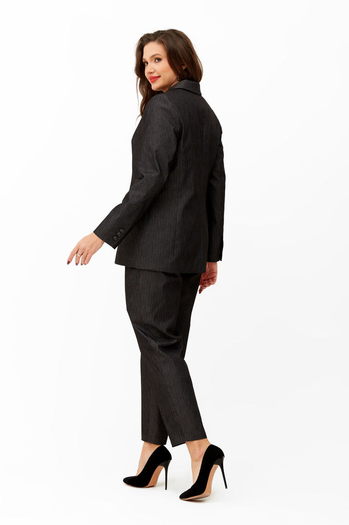 Состав: ПЭ-5%; Хлопок-95%; Жакет женский полуприлегающего силуэта, выполнен из плотного джинса в полоску. Жакет с центральной застежкой на петли и пуговицы, с пиджачным воротником, с втачными рукавами... Показать описание. Перед с нагрудными вытачками, отрезными бочками, прорезными карманами «в рамку» с клапаном и прорезным с листочкой. Спинка с отрезными бочками и средним швом. Рукава двухшовные со шлицей. Наименование измерений/размер 44 46 48 50 52 54 56 58 60 Ширина по линии груди (жакет) 49 51 53 55 57 59 61 63 6 Ширина по линии бедер 52 54 56 58 60 62 64 66 68 Длина по спинке 69 69 69 69 69 69 69 69 69 Длина рукава 62 62 62 62 62 62 62 62 62 Ширина рукава 16 17 18 19 20 21 22 23 24 Допустимые отклонения +-1-1,5 см