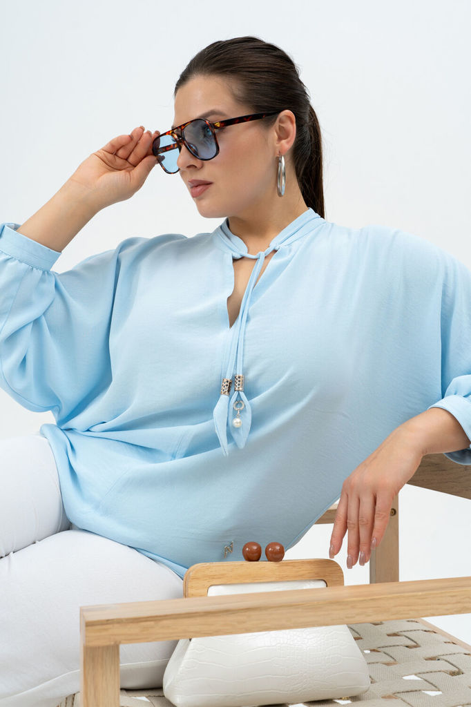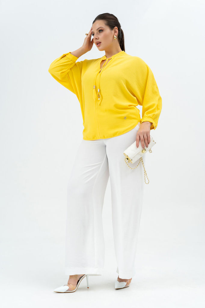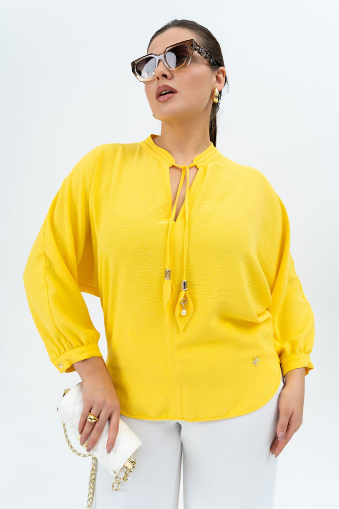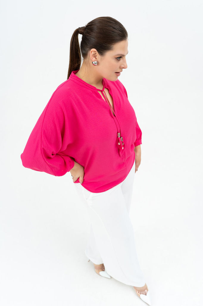 Состав: Вискоза-34%; ПЭ-64%; Спандекс-2%; Блузка женская как для праздников так и для любого повода, , покроя "летучая мышь" , со стойкой на которую настрочена завязка с декоративными кисточками из б... Показать описаниеахромы, со швом по центру полочки, рукава цельнокроёные, застёгивающиеся на петлю и пуговицу. низ блузки по спинке длиннеее, по полочке короче.
