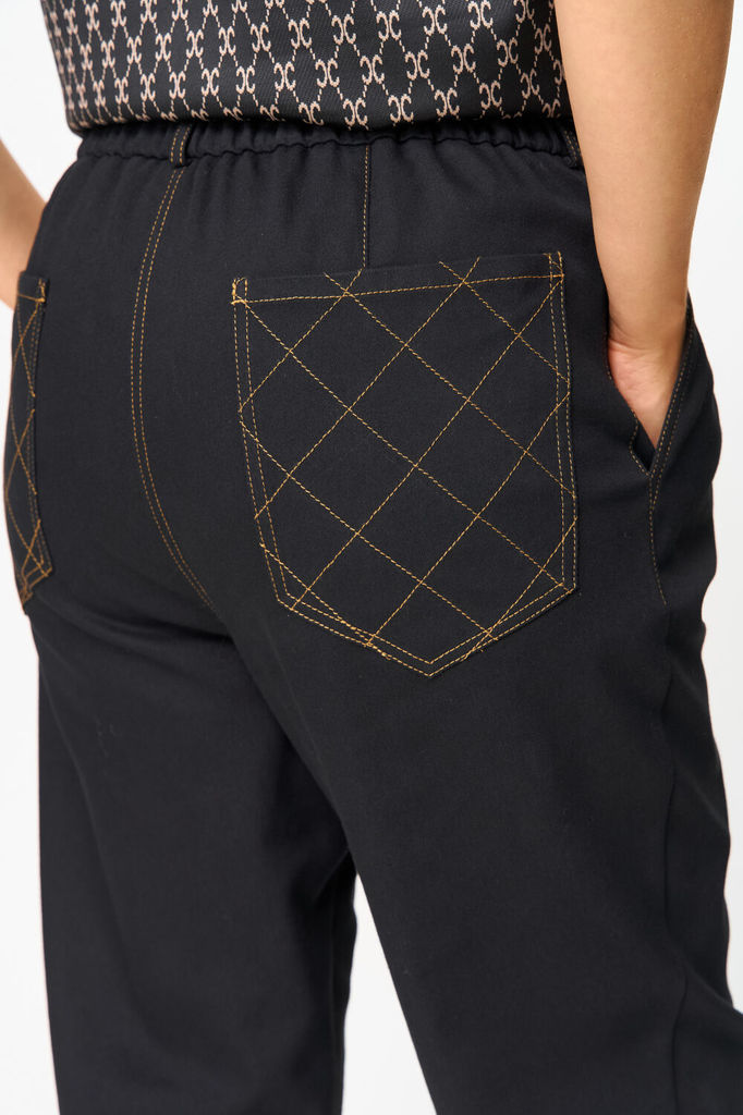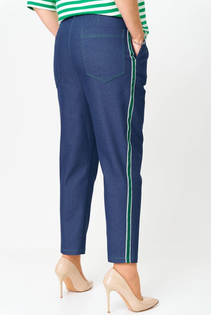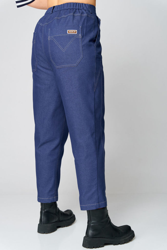 Состав: ПЭ-37%; Спандекс-3%; Хлопок-60%; Брюки женские, выполнены из джинсовой ткани. Передние половинки с вертикальными подрезами, с боковыми карманами, задние половинки с кокетками и накладными карм... Показать описаниеанами. Застёжка спереди на молнию, пояс по спинке с резинкой. По подрезам, карманам, шаговым и среднему швам проложены двойные отделочные строчки. Таблица измерений изделия в готовом виде М 2018 Наименование измерений/размер 52 54 56 58 60 62 Ширина по линии талии (в растянутом виде) 39 (48) 41 (50) 43 (52) 45 (54) 47 (56) 49 (58) Ширина по линии бёдер 56 58 60 62 64 66 Длина брюк 100 100 100 100 100 100 Допустимые отклонения +-1-1,5 см