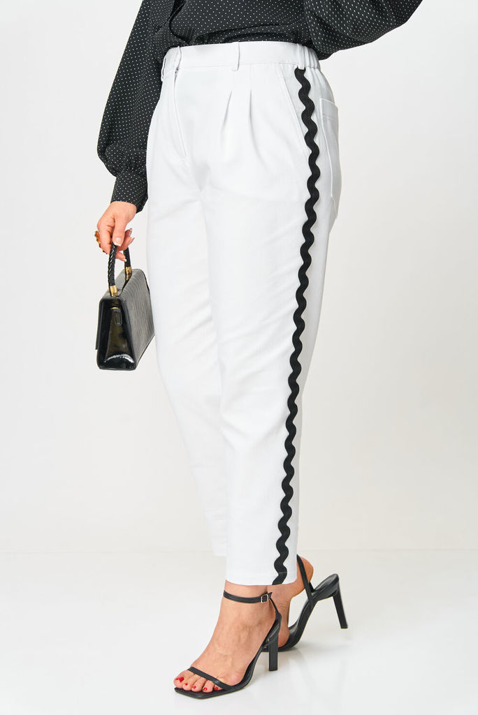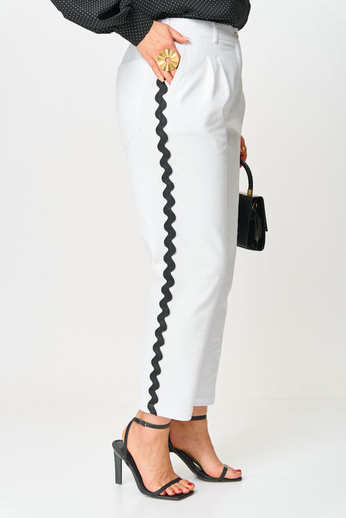 Состав: Вискоза-33%; ПЭ-64%; Эластан-3%; Брюки с высокой посадкой — это лучший выбор для женщин, ищущих комфорт и стиль. Брюки изготовлены из высококачественной поливискозы, они обеспечивают идеальный... Показать описание баланс между удобством и прочностью. Модель с высокой посадкой, с боковыми наклонными карманами, с декоративной тесьмой по боковым швам. Брюки на притачном поясе частично с резинкой Таблица измерений изделия в готовом виде М 2026 Наименование измерений/размер 50 52 54 56 58 60 Ширина по линии талии (в растянутом виде) 39(46) 41(48) 43(50) 45(52) 47(54) 49(56) Ширина по линии бёдер 57 59 61 63 65 67 Длина 98 98 98 98 98 98 Допустимые отклонения +-1-1,5 см