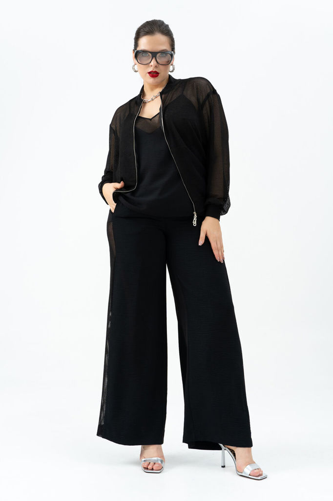 Состав: ПЭ-100%; Брюки палаццо со вставками из пайеток смотрятся очень стильно и оригинально. Праздничная прямая модель легко впишется в любой образ, они отлично сочетаются с блузками и топами из наше... Показать описанией коллекции. Высокая посадка и резинка по талии обеспечат комфорт и удобство в носке, а прямые широкие штанины зрительно вытянут силуэт, подчеркнув достоинства фигуры. Таблица измерений изделия в готовом виде М 2031 Наименование измерений/размер 50 52 54 56 58 60 62 64 Ширина по линии талии 39 41 43 45 47 49 51 53 Ширина по линии бёдер 56 58 60 62 64 66 68 70 Длина изделия 108 108 108 108 108 108 108 108 Допустимые отклонения +-1-1,5 см
