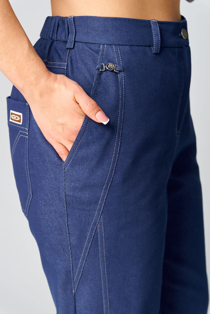 Состав: ПЭ-37%; Спандекс-3%; Хлопок-60%; Джинсы мом с высокой посадкой - это идеальный выбор для женщин, ищущих комфорт и стиль в повседневной жизни, на работе. Брюки изготовлены из высококачественног... Показать описаниео смесового хлопка, обеспечивают идеальный баланс между удобством и прочностью. Модель с высокой посадкой, сзади с накладными карманами с отделкой и боковыми наклонными спереди. Вставки из экокожи с молниями по задним половинкам брюк внизу придают функциональности. Брюки на притачном поясе частично с резинкой. Таблица измерений изделия в готовом виде М 2027 Наименование измерений/размер 50 52 54 56 58 60 Ширина по линии талии (в растянутом виде) 39(46) 41(48) 43(50) 45(52) 47(54) 49(56) Ширина по линии бёдер 57 59 61 63 65 67 Длина 98 98 98 98 98 98 Допустимые отклонения +-1-1,5 см