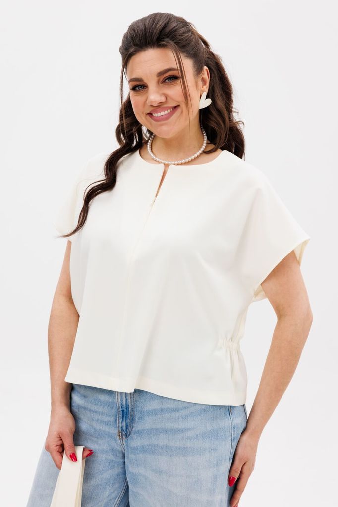 Состав: Вискоза-28%; ПЭ-68%; Спандекс-4%; Эта блуза на резинке представляет собой стильное сочетание комфорта и элегантности. Ее красивые разрезы на руках добавляют изысканности, делая ее подходящей к... Показать описаниеак для повседневных образов, так и для особых случаев. Легкая эластичная ткань обеспечивает свободу движений, что делает эту блузу универсальным выбором на любой момент. На фото классические брюки 1416.1. Замеры: Размер 48: ОГ-106; ОТ-108; ОБ-110; ДИ-58; ДР-63; ОП-36; Размер 50: ОГ-110; ОТ-112; ОБ-114; ДИ-59; ДР-64; ОП-38; Размер 52: ОГ-114; ОТ-116; ОБ-118; ДИ-60; ДР-64; ОП-40; Размер 54: ОГ-120; ОТ-122; ОБ-124; ДИ-61; ДР-64; ОП-42; Размер 56: ОГ-124; ОТ-126; ОБ-128; ДИ-62; ДР-64; ОП-43; Размер 58: ОГ-128; ОТ-130; ОБ-132; ДИ-62; ДР-65; ОП-44; Размер 60: ОГ-132; ОТ-134; ОБ-136; ДИ-62; ДР-65; ОП-44; Размер 62: ОГ-136; ОТ-138; ОБ-142; ДИ-65; ДР-66; ОП-46;