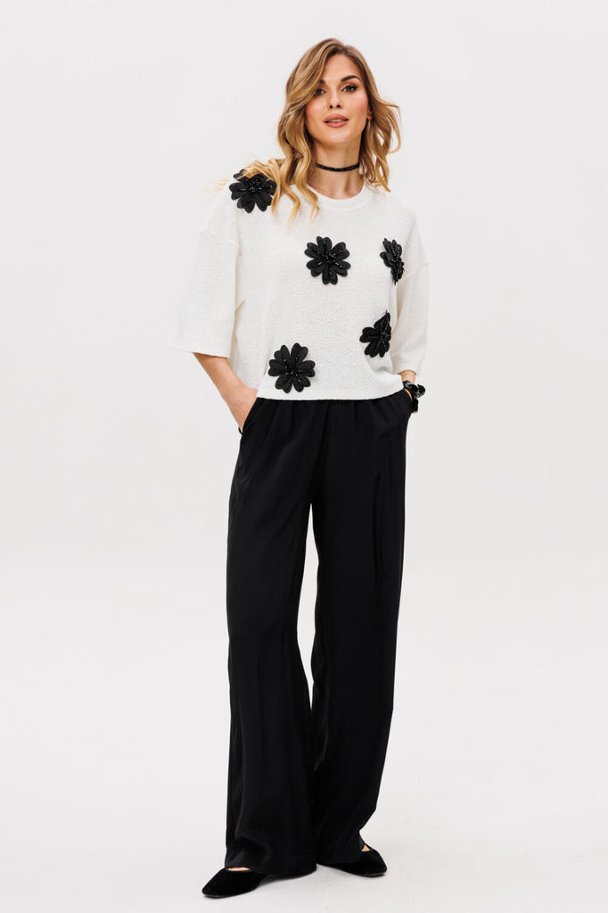 Состав: ПЭ-100%; Брюки выполнены из сетки с рисунком. Брюки прямого силуэта, длиной в пол, на притачном поясе с эластичной тесьмой. Длина: 111 см. Гарантийный срок не установлен ГОСТ 25294-2003