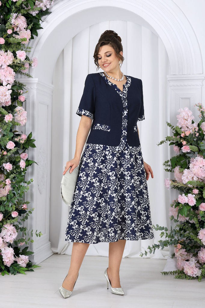 Состав: Платье: ПЭ-97%; Спандекс-3%; Отделка: ПЭ-100%; Этот комплект состоит из кружевного кардигана и платья, создавая великолепный и элегантный образ для особых мероприятий. Кружевной кардиган играе... Показать описаниет важную роль в формировании правильного силуэта. Его утонченный узор и легкая ткань создают эффект легкости и воздушности, и при этом подчеркивают достоинства фигуры. Он мягко облегает тело, придавая образу изящество и стиль. Платье, в свою очередь декорировано кружевом и стразами в области горловины эти детали добавляют платью изысканности и шарма, привлекая внимание к вашей элегантности. Комплект женский, состоящий из платья, выполненного из костюмно-плательной ткани и кардигана из гипюра. Платье женское полуприлегающего силуэта, длиной по среднему шву спинки р 52,54,56,58,60 - 104 см; р.62,64,66 - 105,5 см. Перед с рельефными швами, проходящими через центр груди, идущими от пройм до низа. Центральная часть переда в области горловины с фигурными подрезами, декорированы кружевом и стразами. Спинка с рельефными швами, идущими от пройм до низа, со средним швом, в верхней части которого расположена застежка на потайную тесьму-"молнию", в нижней – шлица. Горловина спинки округлой формы, переда – фигурное каре, декорирована стразами. Рукав втачной, одношовный, длиной 27 см. Кардиган свободного силуэта, длиной по середине спинки р.52,54,56,58,60 - 98 см; р.62,64,66 – 99,5 см, от шва втачивания воротника. Низ кардигана ассиметричной формы: укороченный спереди, удлиненный к центру спинки. Борта и горловина оформлены отложным воротником-шаль. Рукава втачные, одношовные. Длина рукавов 59 см. Низа рукавов оформлены фестонами. Размерный ряд 50 52 54 56 58 60 62 64 Обхват груди 101-105/105-109/109-113/113-117/117-121/121-125/125-129/129-133 Обхват талии 94-98/98-102/102-106/106-110/110-114/114-118/118-122/122-127 Обхват бедер 109-113/113-117/117-121/122-125/125-129/129-133/133-137/137-141 Длина платья по среднему шву спинки р.50-58 - 104 см, р.60-64 - 105,5 см Длина кардигана по середине спины р.50-58 - 98 см, р. 60-64 - 99,5 см Срок исполнения заказа от 3 до 7 дней!