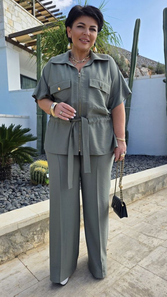 Состав: Вискоза-83%; Нейлон-17%; Модель отшивается под заказ. Срок пошива от 3 недель. Летние брюки цвета хаки — это не просто предмет гардероба, а инструмент самовыражения. Они сочетают в себе практи... Показать описаниечность и элегантность городских брюк, натуральность оттенков и универсальность нейтральной палитры. Эти брюки подходят для женщины, которая не делит жизнь на "повседневное" и "особенное" — для неё каждый день может быть особенным, если правильно его одеть. Они говорят: "Я готова к приключениям, но делаю это стильно". В конце концов, настоящий стиль — это не про следование правилам, а про умение создавать свои, и брюки цвета хаки дают для этого идеальный холст. Сочетания: с спортивным топом — для активного дня; с oversize — расслабленный вайб; с футболкой с графическим принтом — молодёжный дух. Брюки прямого силуэта с притачным поясом на эластичной тесьме-резинке, что обеспечивает максимально удобную посадку на любой тип фигуры. По переду брюк застрочены «кантики». Это конструктивный приём, который позволяет визуально вытягивать фигуру. По переду брюк наклонные карманы. Длина брюк 108 см. Брюки 52 54 56 58 60 62 ширина по талии 84/102 88/106 92/110 96/114 100/118 104/122 обхват бедер 124 128 132 136 140 146