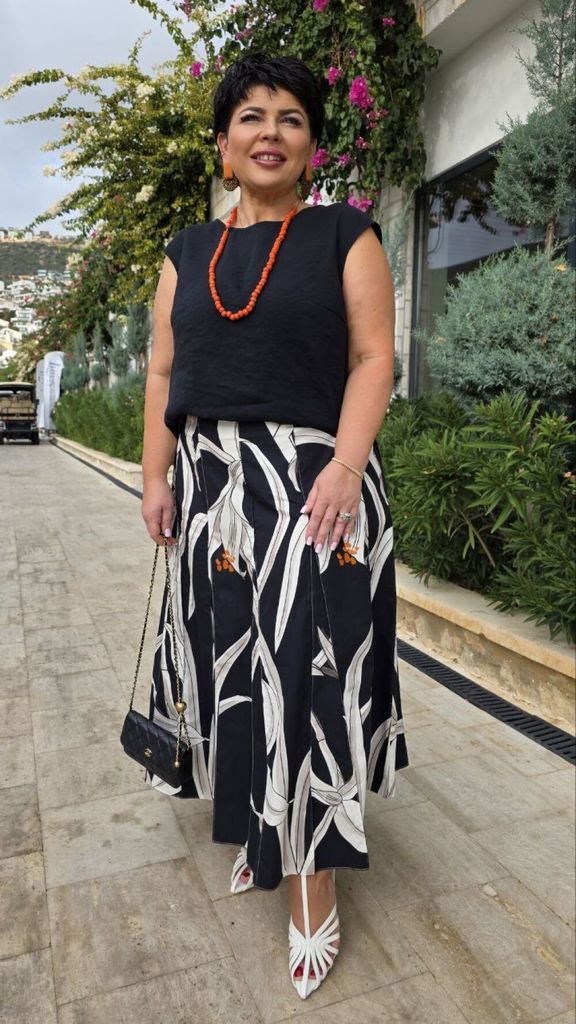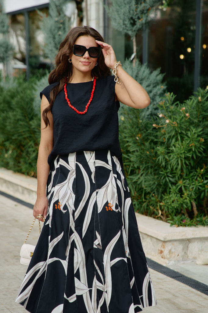 Состав: Модал-85%; ПЭ-15%; Модель отшивается под заказ. Срок пошива от 3 недель. Базовая чёрная блуза без рукава — это не просто предмет одежды. Это пространство. Пустота, которую можно заполнить чем ... Показать описаниеугодно: яркой юбкой, строгими брюками, джинсами с потертостями. Это холст, на котором можно рисовать любой образ. Сочетается со всем — от белых льняных брюк до кожаной юбки. Подходит для любого случая — офис, свидание, прогулка, вечеринка. Не устаревает — она вне времени, как чёрный цвет. Подчёркивает, а не перебивает — акценты остаются для аксессуаров и нижней части образа. Блузка свободного силуэта, материал струится по телу лёгкой прохладой, горловина — изящный полукруг, обрамляющий ключицы. По переду нагрудные вытачки, линия плеча слегка спущенная. Низ в блузке фигурной формы, в боковых швах небольшие разрезы. Длина блузки по спинке 63,5 см, длина рукава (плеча) 12 см (р 50-54), 12,5 см (р 56-60). Длина юбки 87 см (р 50-54), 88 см (56-60). Блуза 50 52 54 56 58 60 обхват груди 108 112 116 120 124 128 обхват талии 112 116 120 124 128 132 обхват бедер 120 124 128 132 136 140