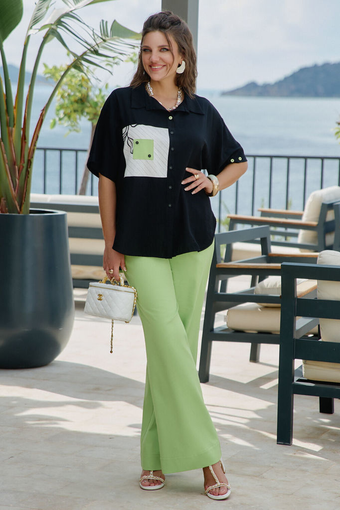 Состав: Вискоза-85%; ПА-15%; Модель отшивается под заказ. Срок пошива от 3 недель. Блузка из чёрного материала становится идеальным фоном для создания базы в гардеробе. Чёрный цвет здесь — не траурный... Показать описание, а драматичный, глубокий, он поглощает свет, чтобы яркие акценты сияли ещё ярче. Эта блузка — не просто предмет гардероба, а инструмент самовыражения. Она достаточно универсальна для офиса, а та же для особых мероприятий. Ключ к успешной стилизации — баланс: позвольте цветочным акцентам быть главными героями образа, а всё остальное пусть будет их достойным фоном. Помните — иногда одна яркая деталь говорит больше, чем целый ансамбль, и эта блузка именно такая деталь. Блузка прямого силуэта с центральной застёжкой на петли-пуговицы по планке, воротником рубашечного типа. По правой детали полочки отрезная кокетка, декоративная вставка из отделочной ткани с ярким акцентом. Линия плеча спущенная, рукав втачной, короткий с декоративным элементом по низу в виде пришивной пуговицы. Спинка в блузке с отрезной кокеткой, декоративной вставкой из отделочного материала с ярким акцентом. Низ в блузке фигурной формы. Длина блузы 80 см (р 52-56), 81 см (р 58-62), длина рукава 21,5 см. Блузка 52 54 56 58 60 62 обхват груди 126 130 134 138 142 146 ширина изделия внизу 130 134 138 142 146 150 ширина рукава внизу 48 48 48 50 50 50