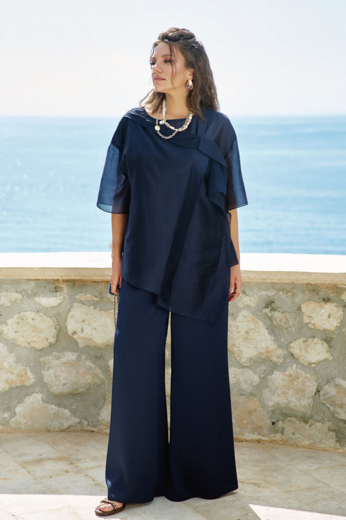 Состав: Вискоза-46%; Район-54%; Модель отшивается под заказ. Срок пошива от 3 недель. Блузка представлена как многофункциональный элемент гардероба, который сочетает в себе эстетическую глубину и прак... Показать описаниетическую универсальность, становясь " холстом для образов". Крой — свободный, но не мешковатый. Универсальность — подходит для работы, встречи с друзьями, прогулки, путешествия. Современность — вне сезонных трендов, но в тренде на осознанное потребление. Блузка не облегает — она скользит. Она не описывает фигуру — она её окутывает. Блузка свободного силуэта с ассиметричной линией борта с заложенными складками, имитацией застёжки на декоративные пуговицы. Горловина в блузке с отложным воротником со стойкой. Рукав в блузке цельнокроеный. Спинка с отрезной кокеткой. Низ в блузке ассиметричный с разрезами в боковых швах. Длина блузки 69 см (р 52-56), 72 см (р 58-62). Длина брюк 108 см. Блузка 52 54 56 58 60 62 обхват груди 136 136 136 148 148 148 обхват бедер 138 138 138 150 150 150 ширина рукава вверху 46 46 46 50 50 50