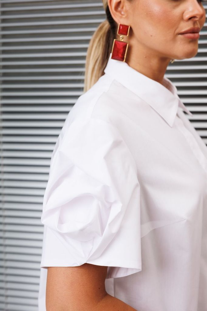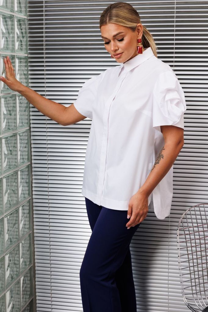 Состав: ПЭ-27%; Хлопок-71%; Эластан-2%; В модный базовый гардероб рубашка должна входить по умолчанию. Рубашка с коротким рукавом не менее универсальная, чем стандартная. Классический прямой силуэт ле... Показать описаниегко комбинируется с любым низом. Акцентом в данной модели является объемный цветок на рукавах. По переду - центральная потайная застежка на петли-пуговицы. По спинке кокетка и вертикальные, глубокие складки. Низ фигурный с перепадом длины. Линия плеча спущена. Замеры 46-52: Длина спинки 74 74 74 74 Ширина спинки 42 43 44 45 Ширина на уровне глубины проймы 60 62 64 66 Ширина по линии талии 60 62 64 66 Ширина по линии бедер 62 64 66 68 Длина рукава 25 25 25 25 Ширина рукава вверху 21 22 23 24 Ширина плеча 18 19 19 19