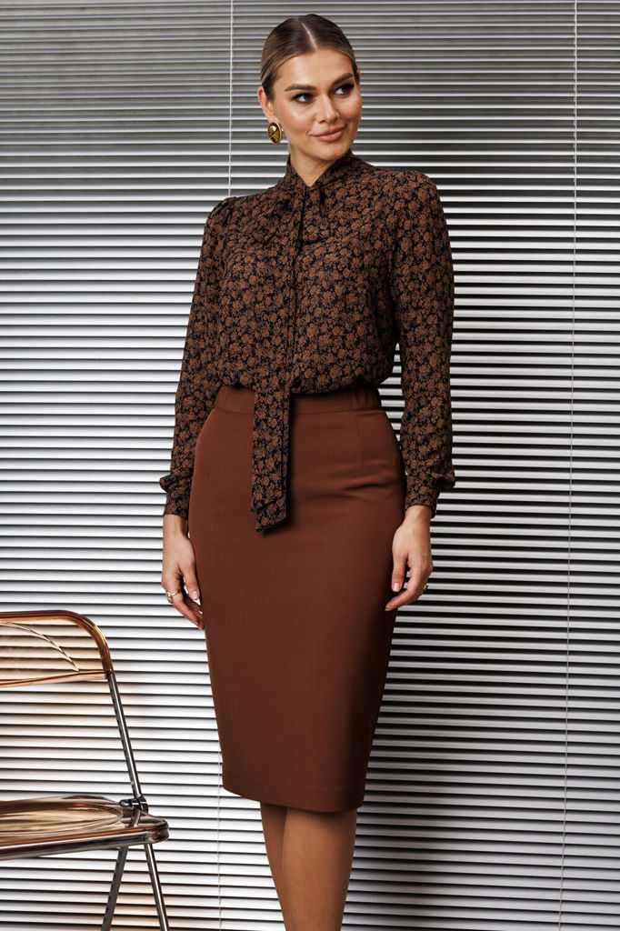 Состав: Костюм: Вискоза-35%; ПЭ-63%; Спандекс-2%; Блуза: ПЭ-100%; Трехпредметный костюм с приталенным жакетом в модной цветовой гамме – яркий экземпляр для Вашей коллекции. Жакет с рельефами. По перед... Показать описаниеу и спинке на полочках обработаны карманы с клапаном. Рукав втачной, двухшовный. Воротник стойка. Застежка на петли-пуговицы. Блуза прямого силуэта, в боковых швах с разрезами, по переду с нагрудной вытачкой. Воротник-стойка, переходящий в бант. Рукав втачной, одношовный, снизу на манжете. Сверху по окату со сборкой. Юбка прямая, зауженная к низу, на притачном поясе, по бокам с резинкой. Застежка на тесьму-молнию в среднем шве, который переходит в шлицу. Жакет и юбка на подкладке. Замеры 46-54: Жакет Длина спинки 59 59 59 59 59 Ширина спинки 38,4 39,4 40,4 41,4 42,4 Ширина на уровне глубины проймы 49 51 53 55 58 Ширина по линии талии 43,5 45,5 47,5 49,5 51,5 Ширина по линии низа 53 55 57 59 61 Длина рукава 61 61 61 61 61 Ширина рукава вверху 17,7 18,2 18,7 19,2 19,7 Ширина плеча 12,8 13 13,2 13,4 13,6 Блуза Длина спинки 71 71 71 71 71 Ширина спинки 39 40 41 42 43 Ширина на уровне глубины проймы 52 54 56 58 60 Ширина по линии талии 53 55 57 59 61 Ширина по линии бедер 53 55 57 59 61 Длина рукава + манжета 62,5 62,5 62,5 62,5 62,5 Ширина рукава вверху 18 18,5 19 19,5 20 Ширина плеча 11,9 12,1 12,3 12,5 12,7 Юбка Длина по боковому шву 69 70 70 70 70 Ширина по линии талии 39 41 43 45 47 Ширина по линии бедер 51 53 55 57 59