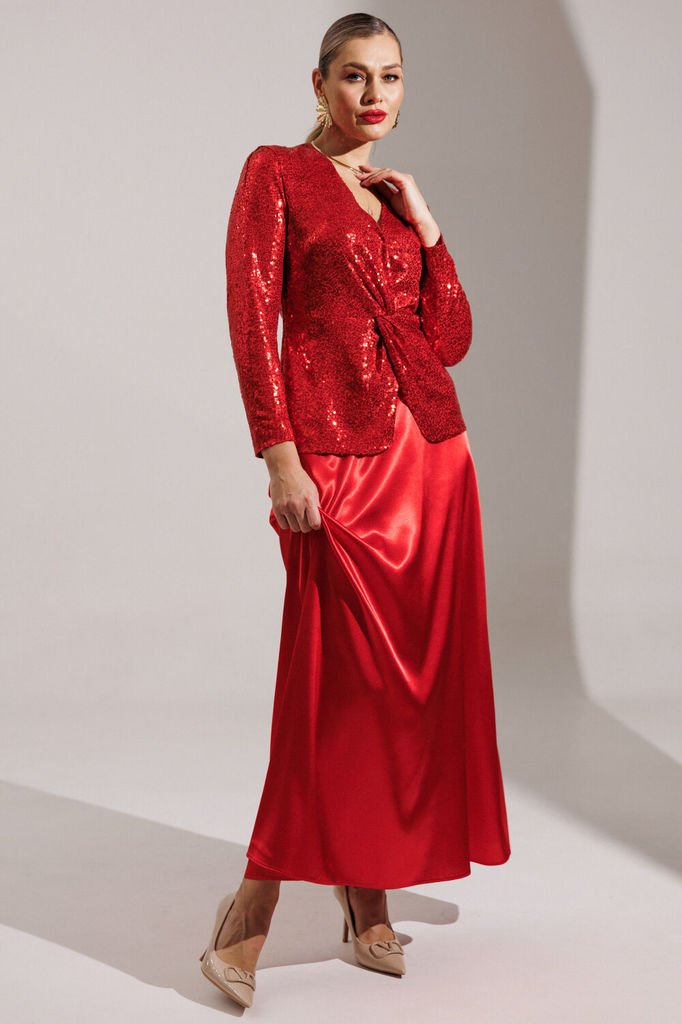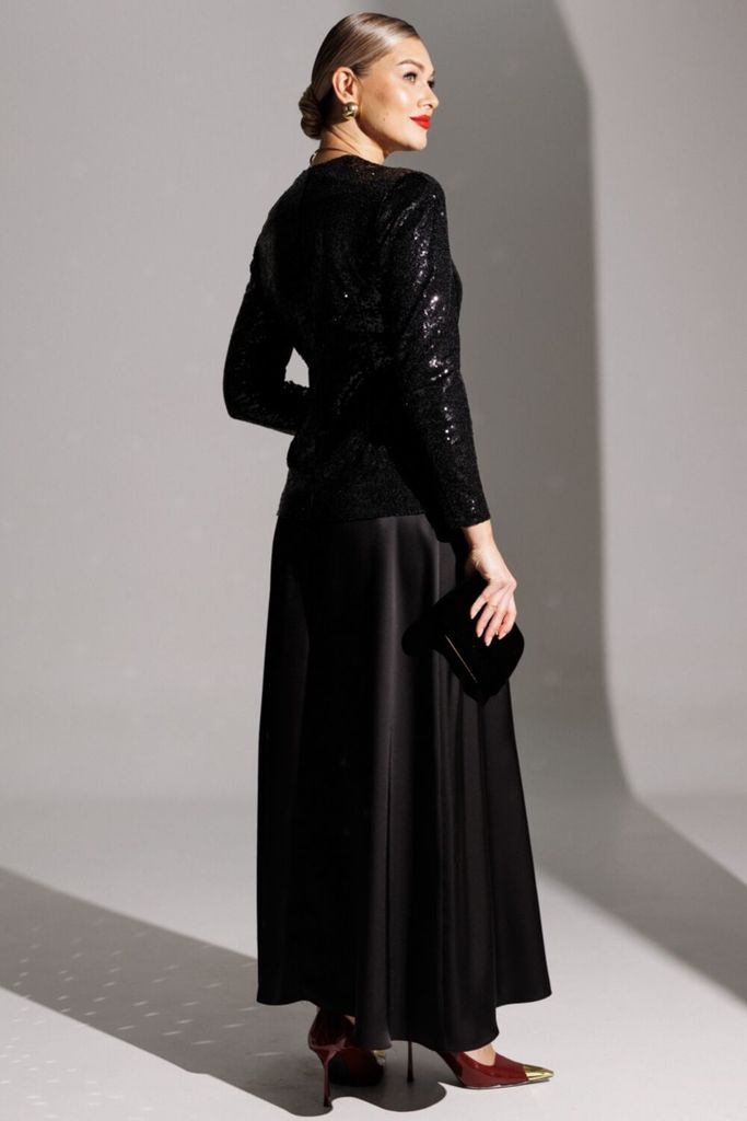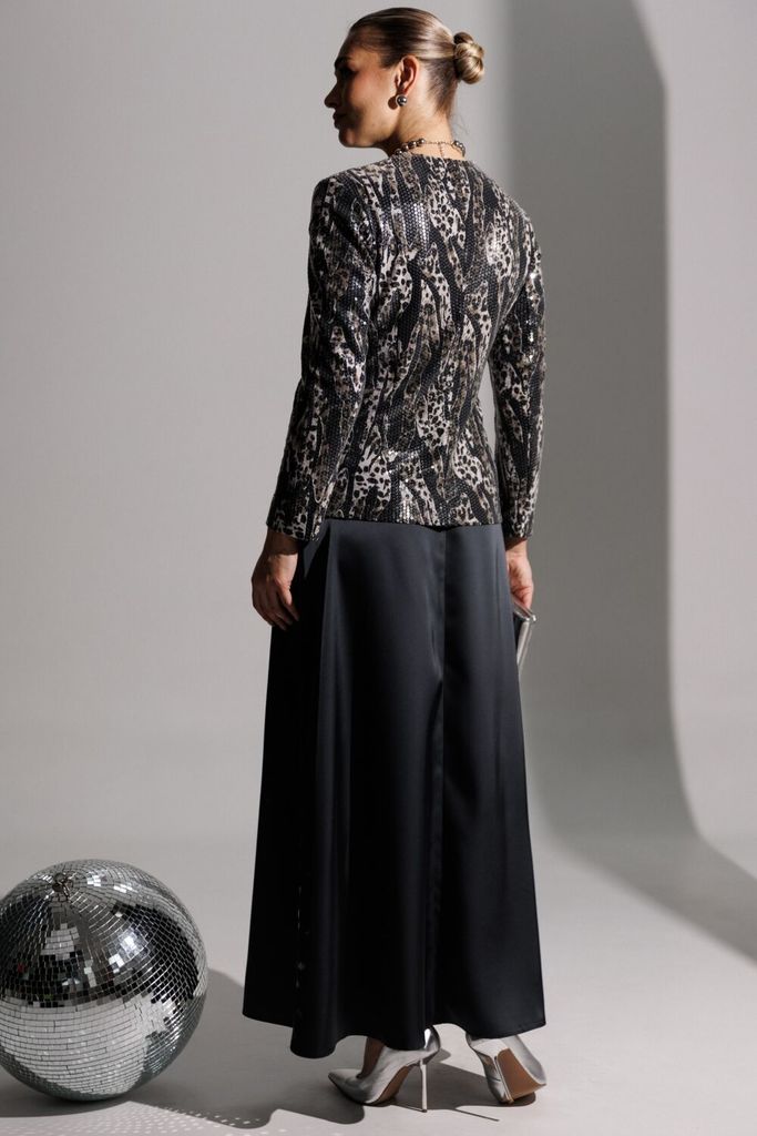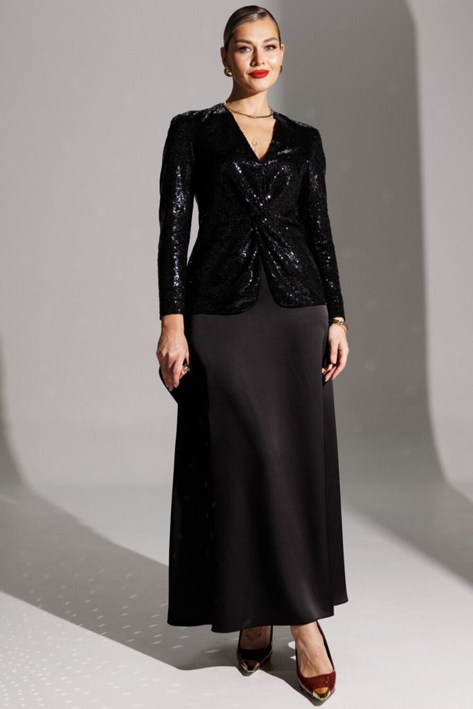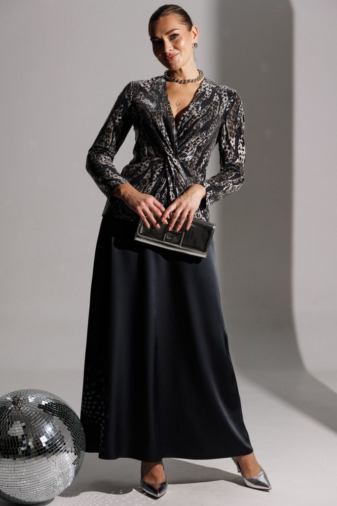 Состав: Блуза: ПЭ-96%; Спандекс-4%; Юбка: ПЭ-100%; Продолжением нашей нарядной коллекции является роскошный комплект, состоящий из блузы, имитирующей жакет, и невероятной струящейся юбки из атласа дли... Показать описаниены макси. Блуза из ткани в пайетки с декоративным узлом в области талии. V-образный вырез. Блуза приталенного силуэта с втачными, двухшовными рукавами. Блуза частично на подкладке. Юбка на поясе с резинкой. Замеры 48-54: Блуза Длина спинки 62 62 62 62 Ширина спинки 19,5 20 20,5 21 Ширина на уровне глубины проймы 50 52 54 56 Ширина по линии талии 42 44 46 48 Длина рукава 57 57 57 57 Ширина по линии бедер 53 55 57 59 Ширина рукава вверху 17 17,5 18 18,5 Ширина плеча 12,3 12,5 12,7 12,9 Юбка Длина по боковому шву 102 102 102 102 Ширина по линии талии 42 44 46 48