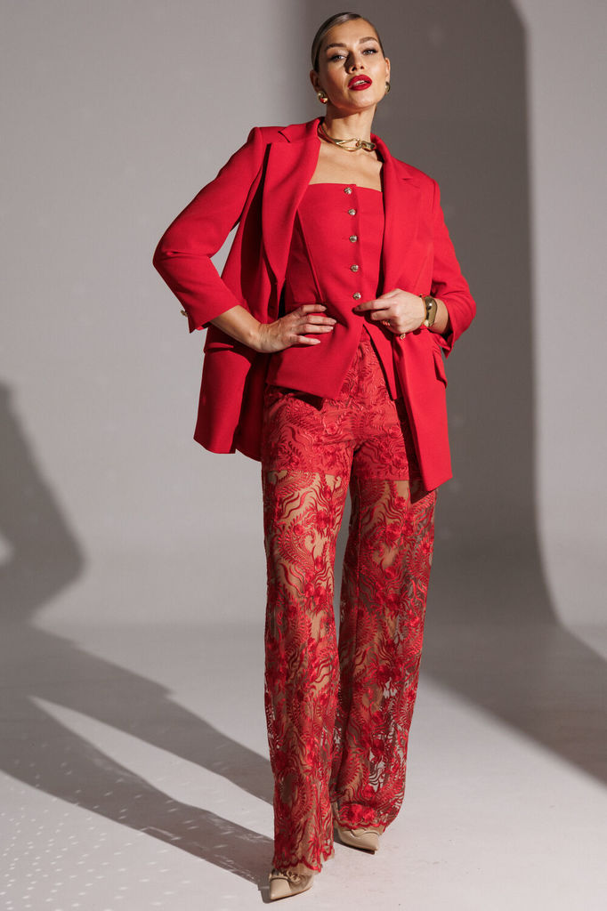 Состав: ПЭ-100%; Капсула RED CODE - Ваша формула смелого праздника. Она создана для особых случаев включает в себя жакет, корсет и брюки, создавая элегантный и стильный образ. Брюки двухслойные, свобо... Показать описаниедного силуэта. Нижняя часть представляет собой короткие шорты. Верхний слой выполнен из прозрачного гипюра с изысканной каймой по низу, что придает изделию особую утонченность. Верхний срез обрабатывается обтачкой. Молния сбоку.Мы собрали все элементы новогодней коллекции в единую капсулу, где каждая вещь - не просто предмет гардероба, а часть большой стилистической головоломки. Собирайте образы как конструктор, меняйтесь в течение вечера и будьте неотразимы в каждой роли! Замеры 44-50: Длина по боковому шву 115 115 115 115 Ширина по линии талии 38 40 42 44 Ширина по линии бедер 49 51 53 55