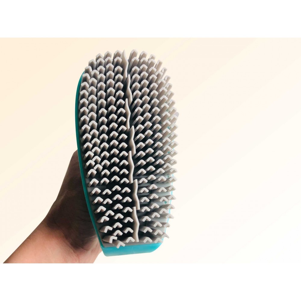 Натуральный каучук обладает природной статичностью, за счет этого качественно и легко на щетку электризуются пылинки, ворсинки, шерсть домашних животных. Щетка подходит для очищения верхней одежды, об... Показать описаниеивки мягкой мебели, салона автомобиля, а также меховых шапок и шуб от пыли и уличной грязи. Удобно вычесывать кошек и собак (лучше влажной), они с удовольствием "разрешают" чесать себя. Каждый волосок выполнен в форме "совочка", что позволяет более тщательно собирать мелкий мусор и пыль. Чистить поверхность быстро и часто, слегка нажимая. Как в сухом так и во влажном виде.