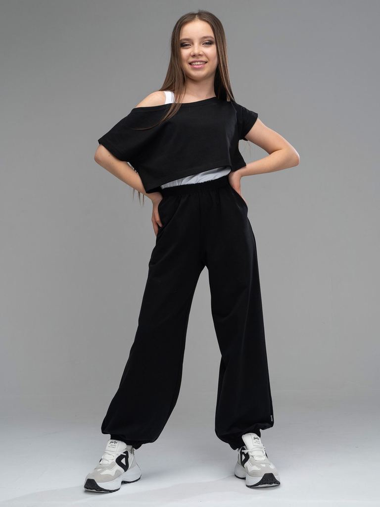 Описание и параметры Широкие брюки из футера(3х нитка) черного цвета свободного силуэта с карманами в боковых швах и резинкой по низу. Трико спортивное сшиты из трикотажа высшего качества Пенье, содер... Показать описаниежащего 92% хлопка, 8% полиэстер. Спортивки тренировочные детские из футера(3х нитка) черного цвета устойчивы к образованию катышков. Брюки без утепления и без начеса подходят на летний, весенний и осенний периоды. Треники комфортны в школу на физкультуру как спортивная форма, для занятия спортом, как одежда для подростка, для дома как домашняя одежда. Стильные широкие штаны подходят для танцев, хип хоп и других направлений. Подростковые брюки современного свободного кроя с удобной посадкой. Трикотажные спортивные штаны станут отличным подарком для ребенка, подростка по любому поводу. Артикул 0882F3ch Цвет Черный Материал Футер(3х нитка) Состав 92%хлопок, 8%полиэст. Размеры * 134/140 Длина изделия: 86 Длина по шаговому шву: 64 Обхват по бёдрам: 79 * 146 Длина изделия: 91 Длина по шаговому шву: 67 Обхват по бёдрам: 84 * 152 Длина изделия: 95 Длина по шаговому шву: 70 Обхват по бёдрам: 88