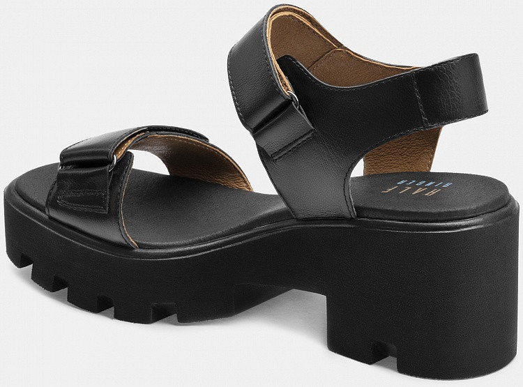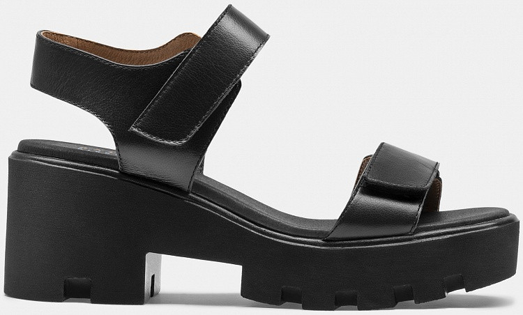 Больше картинок (информации) и таблица размеров на странице. Женские босоножки JOY черного цвета. Верх модели выполнен из качественной натуральной кожи. Благодаря пористой структуре стелька из микрофибры пропускает воздух, а кожаная подкладка отлично впитывает влагу. Две удобные застежки на липучках регулируют полноту в подъеме и в носочной части. Подошва изготовлена из прочного и гибкого полиуретана. Босоножки на толстой подошве - это тренд последних сезонов. Модель сочетается с любым летним гардеробом. Материал верха: Натуральная кожа Материал подклада: Натуральная кожа Материал подошвы: Полиуретан