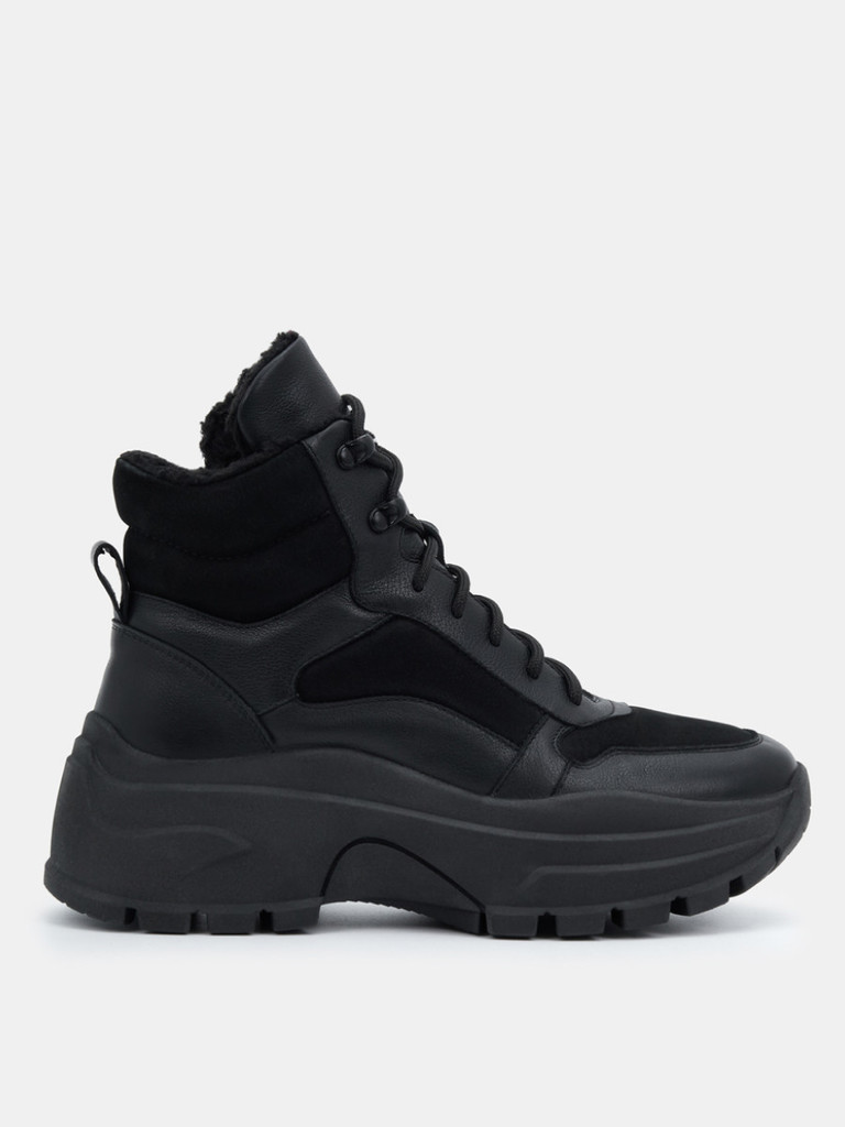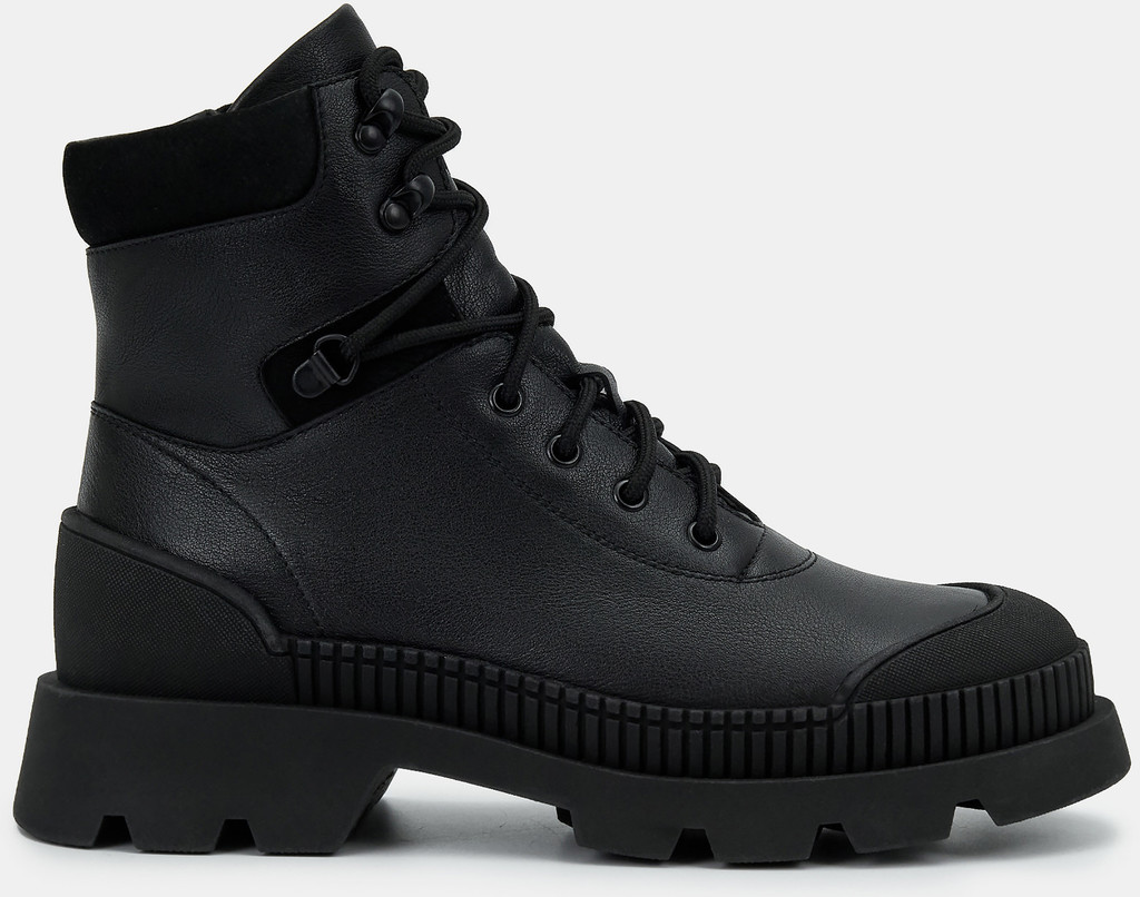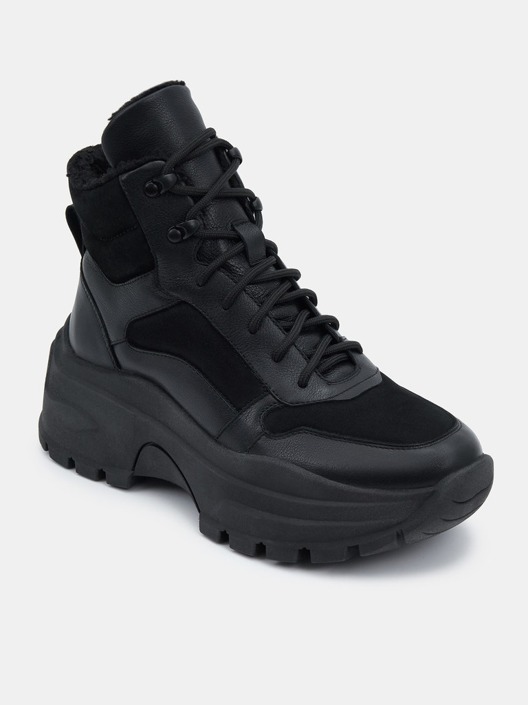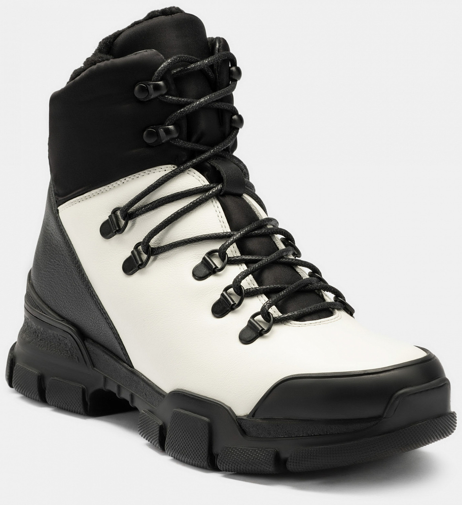Больше картинок (информации) и таблица размеров на странице. Женские ботинки черно цвета. Верх модели выполнен из комбинированно материала - натуральной кожи и технолично текстиля. Подкладка и стелька легко впитывают влагу. Подошва из двух видов полиуретана комфортна и устойчива к износу. Оригинальный протектор обеспечивает надежное сцепление с любой поверхностью. Ботинки в спортивном стиле отличный выбор на демисезонный период. Модель впишется в активный и повседневный casual образ. Материал верха: Натуральная кожа Материал подклада: Текстиль Материал подошвы: ТПУ, ПУ