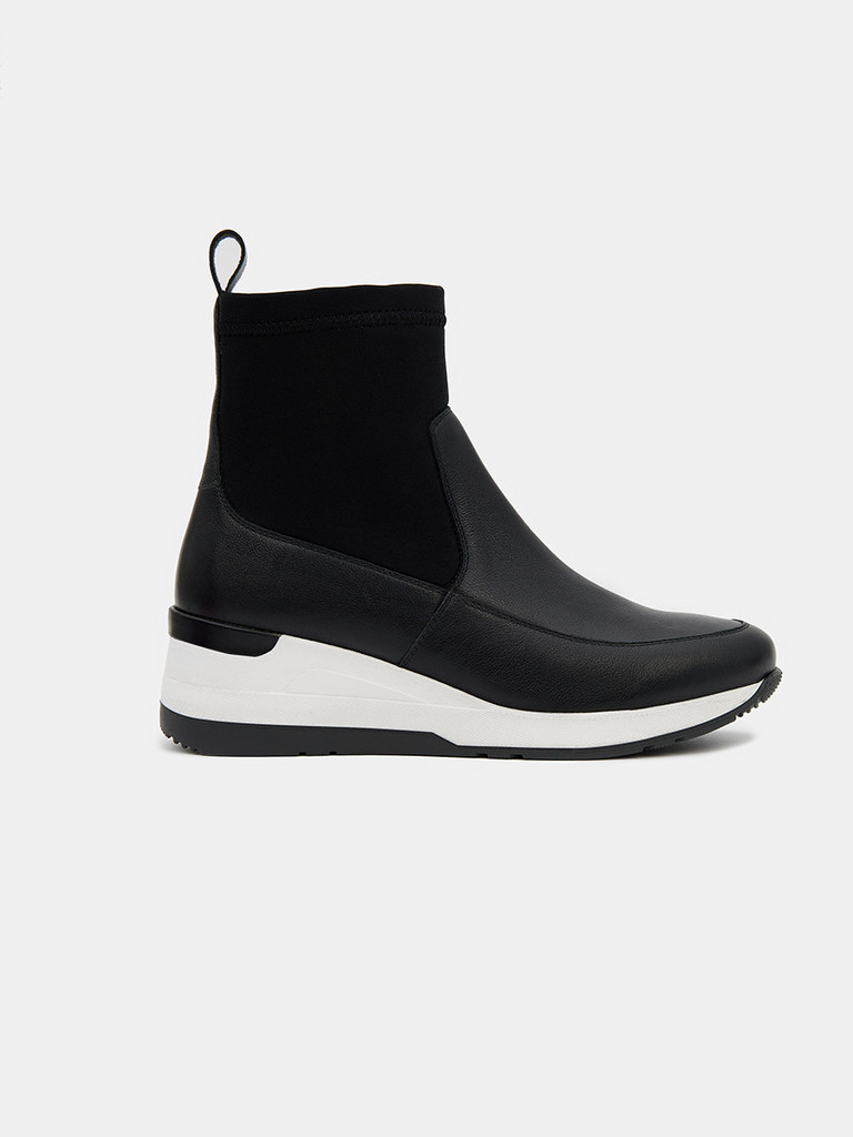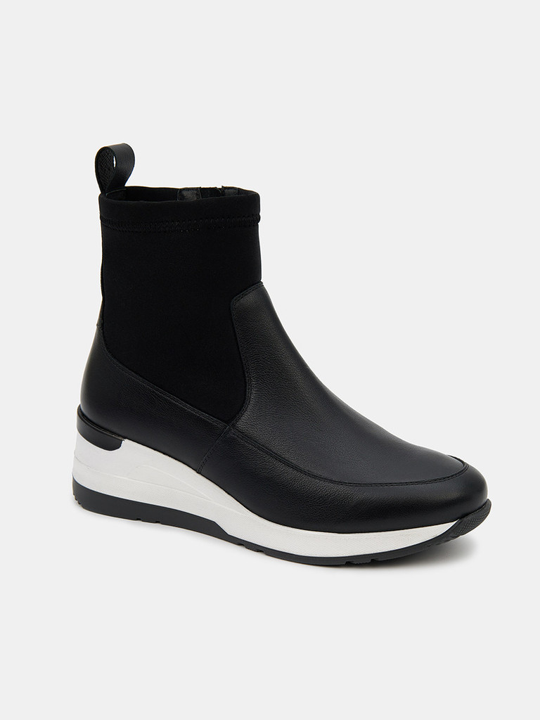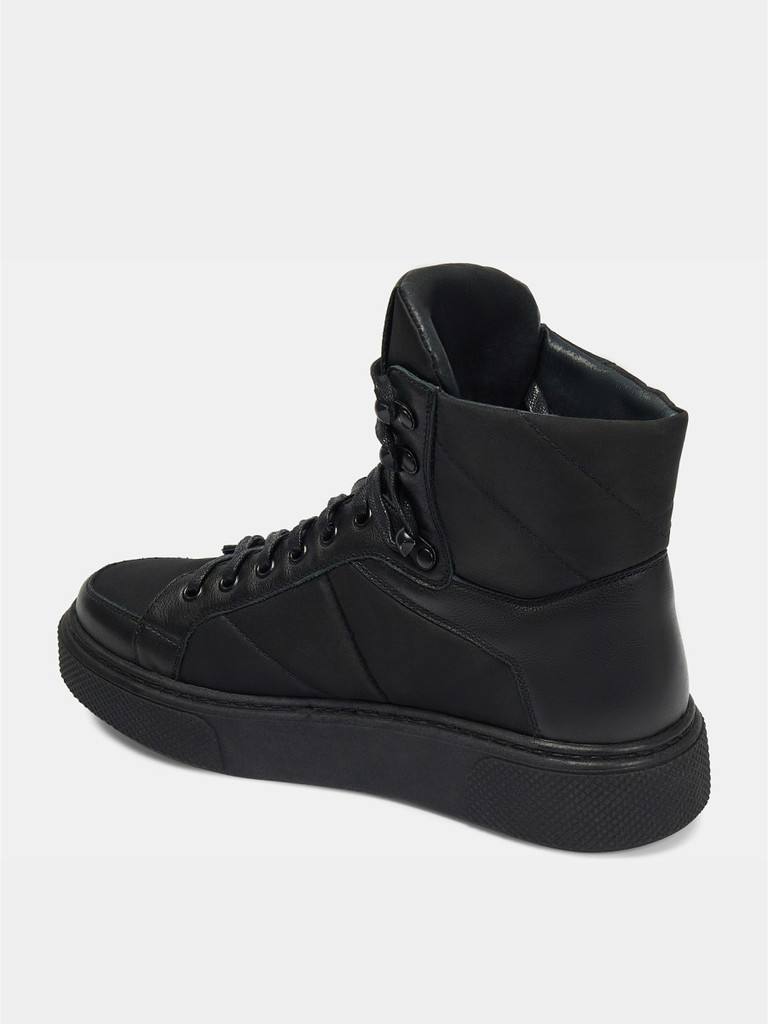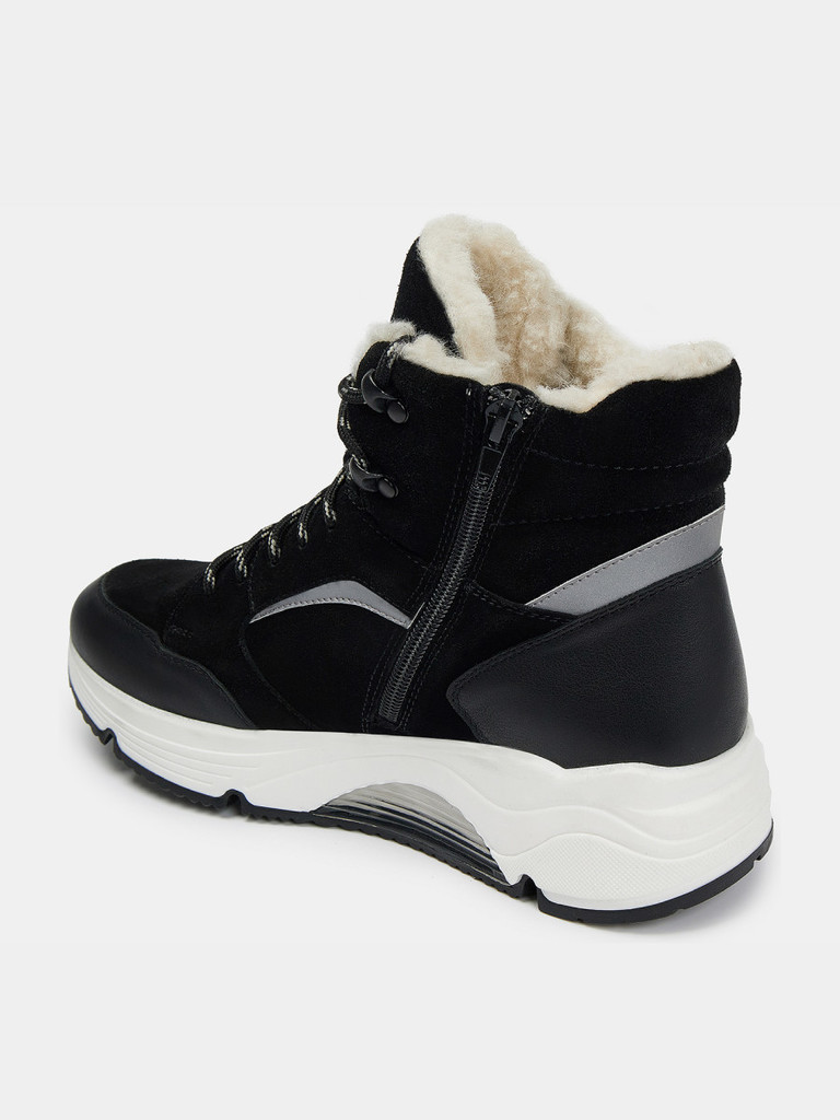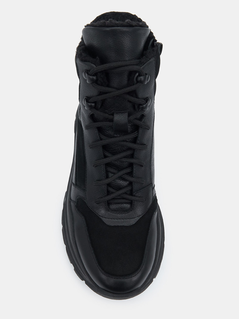 Больше картинок (информации) и таблица размеров на странице. Женские ботинки черно цвета. Верх модели выполнен из комбинированно материала - натуральной кожи и технолично текстиля. Подкладка и стелька легко впитывают влагу. Подошва из двух видов полиуретана комфортна и устойчива к износу. Оригинальный протектор обеспечивает надежное сцепление с любой поверхностью. Ботинки в спортивном стиле отличный выбор на демисезонный период. Модель впишется в активный и повседневный casual образ. Материал верха: Натуральная кожа Материал подклада: Текстиль Материал подошвы: ТПУ, ПУ