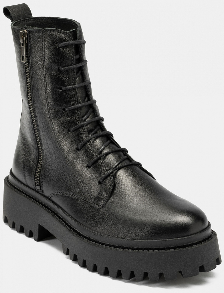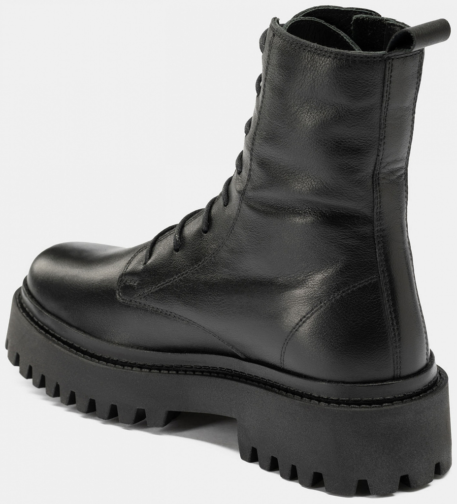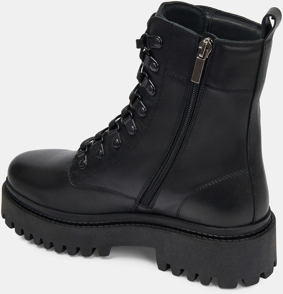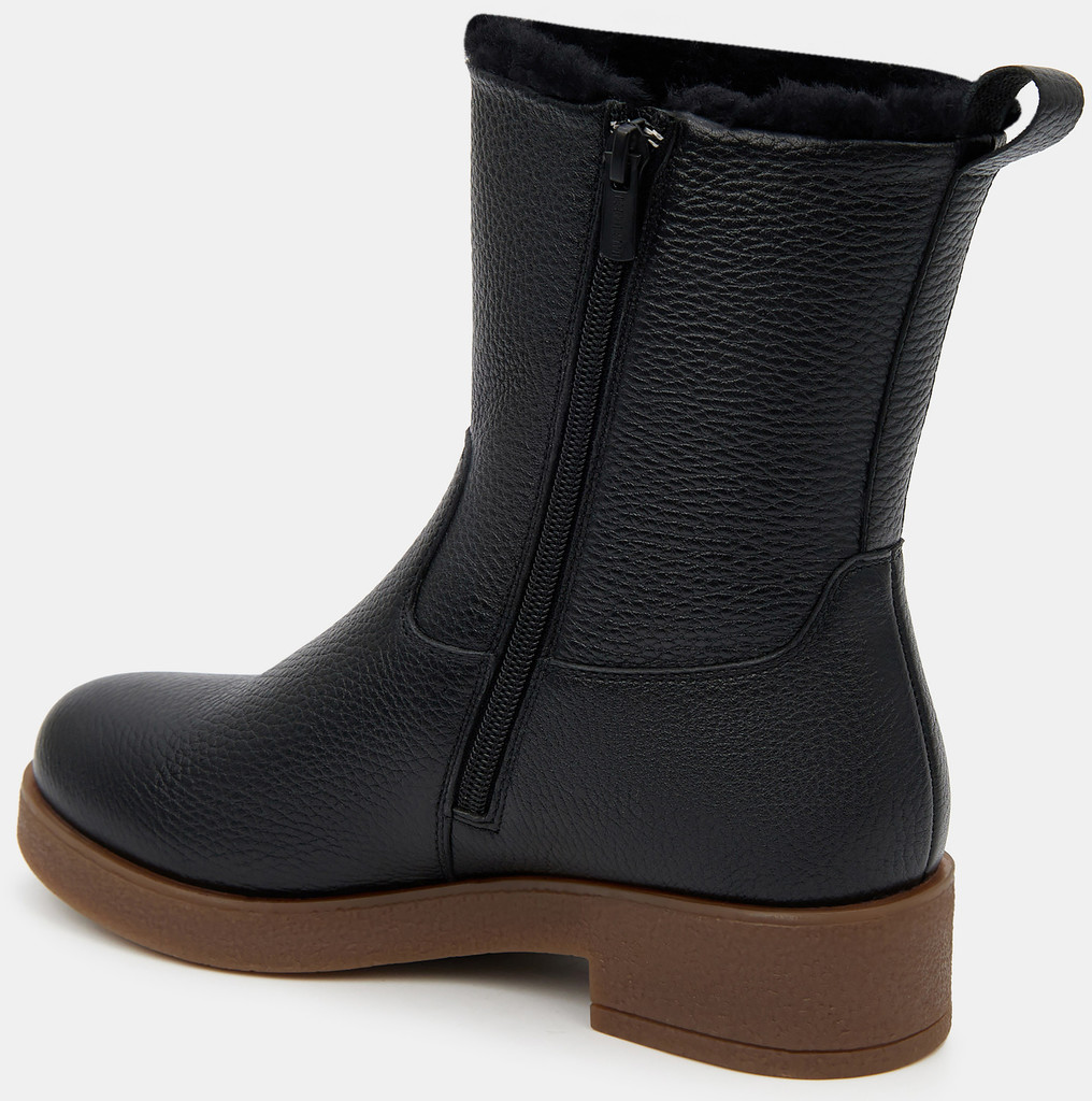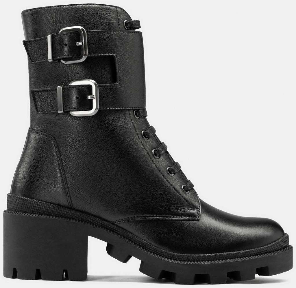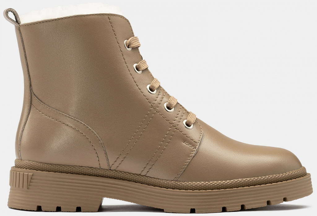 Больше картинок (информации) и таблица размеров на странице. Стильные зимние ботинки PATRICIA созданы из натуральной матовой кожи с высокими терморегулирующими и водоотталкивающими свойствами. Для утепления подклада и стельки использован натуральный мех. Необычная грубая подошва с глубоким протектором обеспечивает антискользящий эффект и добавляет немного брутальности. Шнуровка и ремешок с пряжками позволяют отрегулировать объем, а для легкости надевания имеется молния. Эти ботинки отлично сочетаются как с кожаными лосинами, так и с джинсами. Внутренний материал: Мех натуральный Материал верха: Кожа Материал подклада: Мех натуральный Материал подошвы: ТЭП