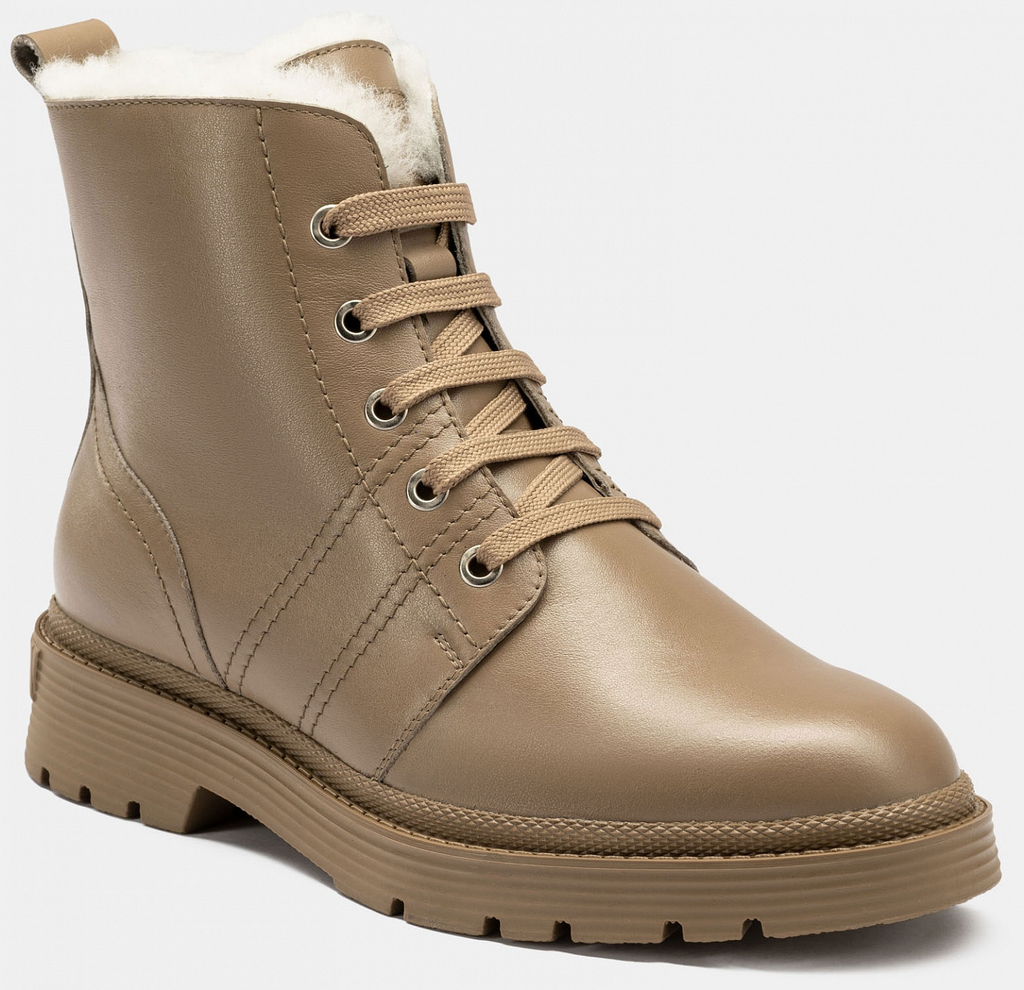 Больше картинок (информации) и таблица размеров на странице. Зимние женские ботинки CORA бежевого цвета. Модель выполнена из качественной кожи. С внутренней стороны имеется молния. Подкладка и стелька утеплены мехом из натуральной шерсти. Продуманная колодка комфортна и удобна. Оригинальная подошва в цвет модели выполнена из прочного и гибкого ТЭП, а фирменный протектор обеспечивает надежное сцепление с любой поверхностью. Модные ботинки для женщин отлично сочетаются со спортивным, повседневным и casual образами. Внутренний материал: Мех натуральный Материал верха: Кожа Материал подклада: Мех натуральный Материал подошвы: ТЭП