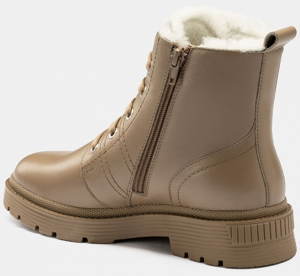 Больше картинок (информации) и таблица размеров на странице. Зимние женские ботинки ANITA выполнены из натуральной гладкой кожи. Модель оснащена шнуровкой для регулирования объема голенища и молнией на внешней стороне для легкости надевания. Рифленая массивная подошва из ТЭП не скользит и защищает ноги от сырости. Подклад и стелька из меха качественно сохраняют тепло внутри, при этом пропуская воздух. Ботинки хорошо сочетаются с разной повседневной одеждой и подходят для долгих прогулок. Внутренний материал: Мех (шерсть) Материал верха: Кожа Материал подклада: Мех (шерсть) Материал подошвы: ТЭП