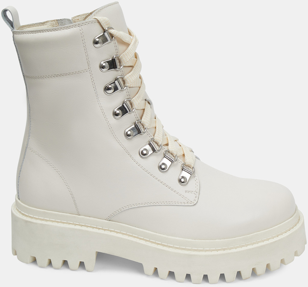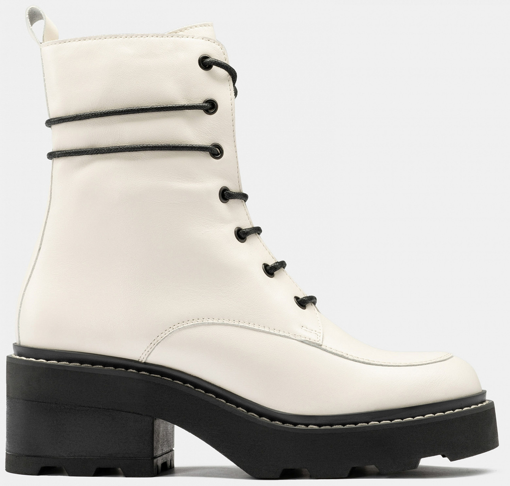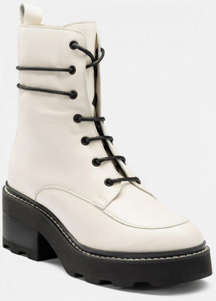 Больше картинок (информации) и таблица размеров на странице. Зимние ботинки DOROTHY в белом цвете отличаются высокой рифленой платформой с небольшим каблуком, а также необычной шнуровкой, позволяющей обмотать шнурок вокруг голенища, не расстёгивая молнию. Эта интересная модель понравится тем, кто желает выглядеть стильно даже в морозные зимние дни. Натуральная кожа и шерстяной подклад защитят ноги от холода и воды, а современные материалы подошвы обеспечат устойчивость на снегу и льду. Внутренний материал: Текстиль Материал верха: Кожа Материал подклада: Мех (шерсть) Материал подошвы: ТЭП