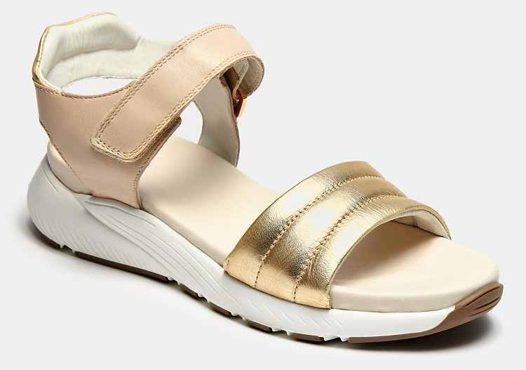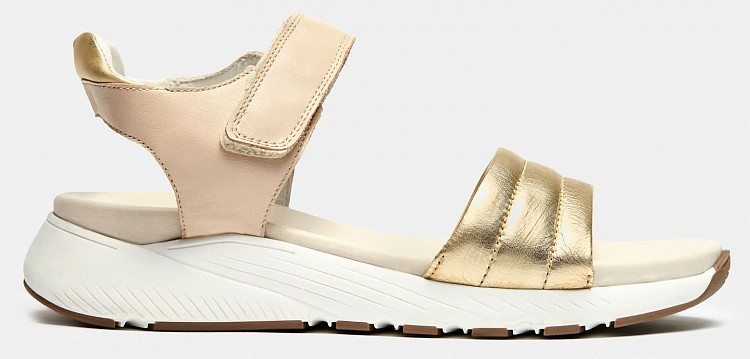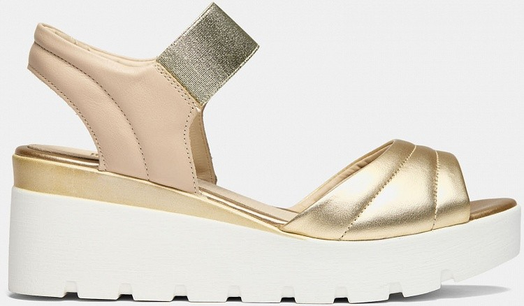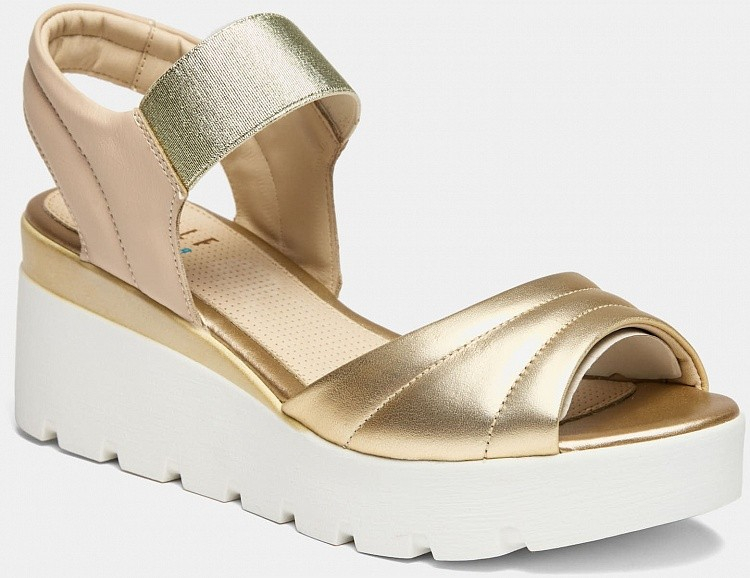 Больше картинок (информации) и таблица размеров на странице. Бежевые босоножки BETTY из натуральной кожи не оставят равнодушными современных модниц. В составе только натуральная кожа, модель выделяется необычной расцветкой бежевого и золотого цвета, подошвой с глубоким рельефом, удобными и практичными резинками вместо застежек и аккуратной каймой вокруг кожаной стельки. BETTY это по-настоящему женственная модель, способная стать украшением на каждый день. Внутренний материал: Кожа Материал верха: Натуральная кожа Материал подклада: Натуральная кожа Материал подошвы: Полиуретан