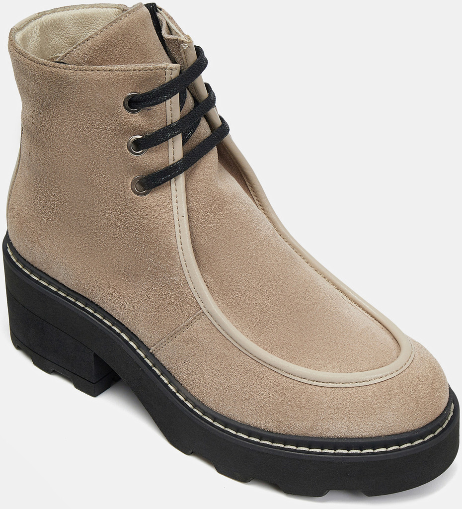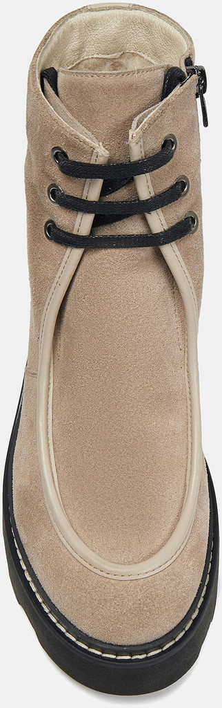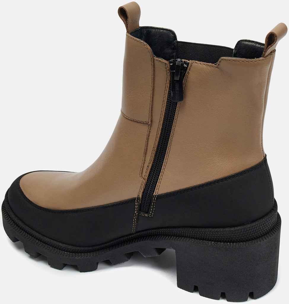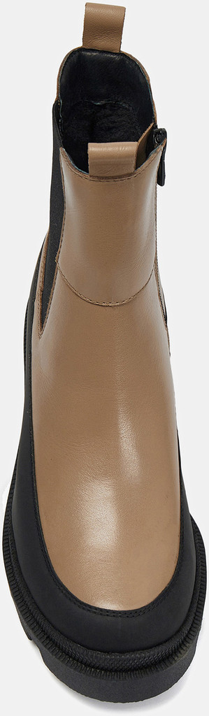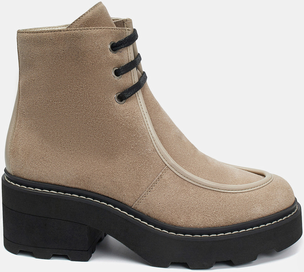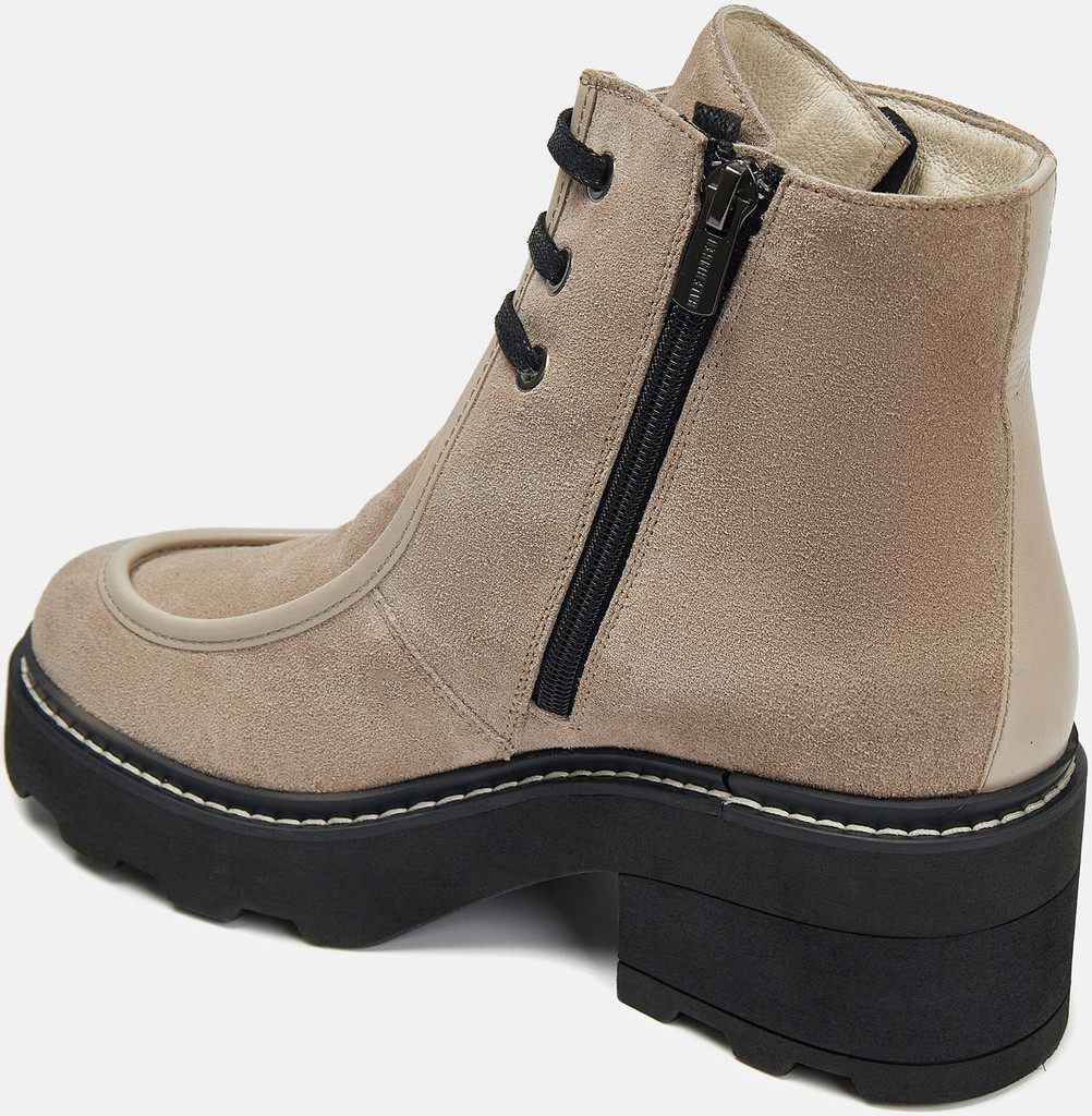 Больше картинок (информации) и таблица размеров на странице. Бежево-черные ботильоны женские PATRICIA из натуральной кожи. Вдоль ранта кожа продублирована искусственным материалом, который устойчив к промоканию и легко чистится. Резинка сбоку адаптируется к полноте ноги, молния позволяет легко надевать пару. Подкладка и стелька из натурального шерстяного меха согреют ноги в мороз. Подошва из ТЭП с устойчивым каблуком не скользит, не стирается и хорошо переносит низкие температуры. Носите ботильоны в стиле casual с вашей повседневной одеждой. Материал верха: Кожа Материал подклада: Мех (шерсть) Материал подошвы: Термоэластопласт