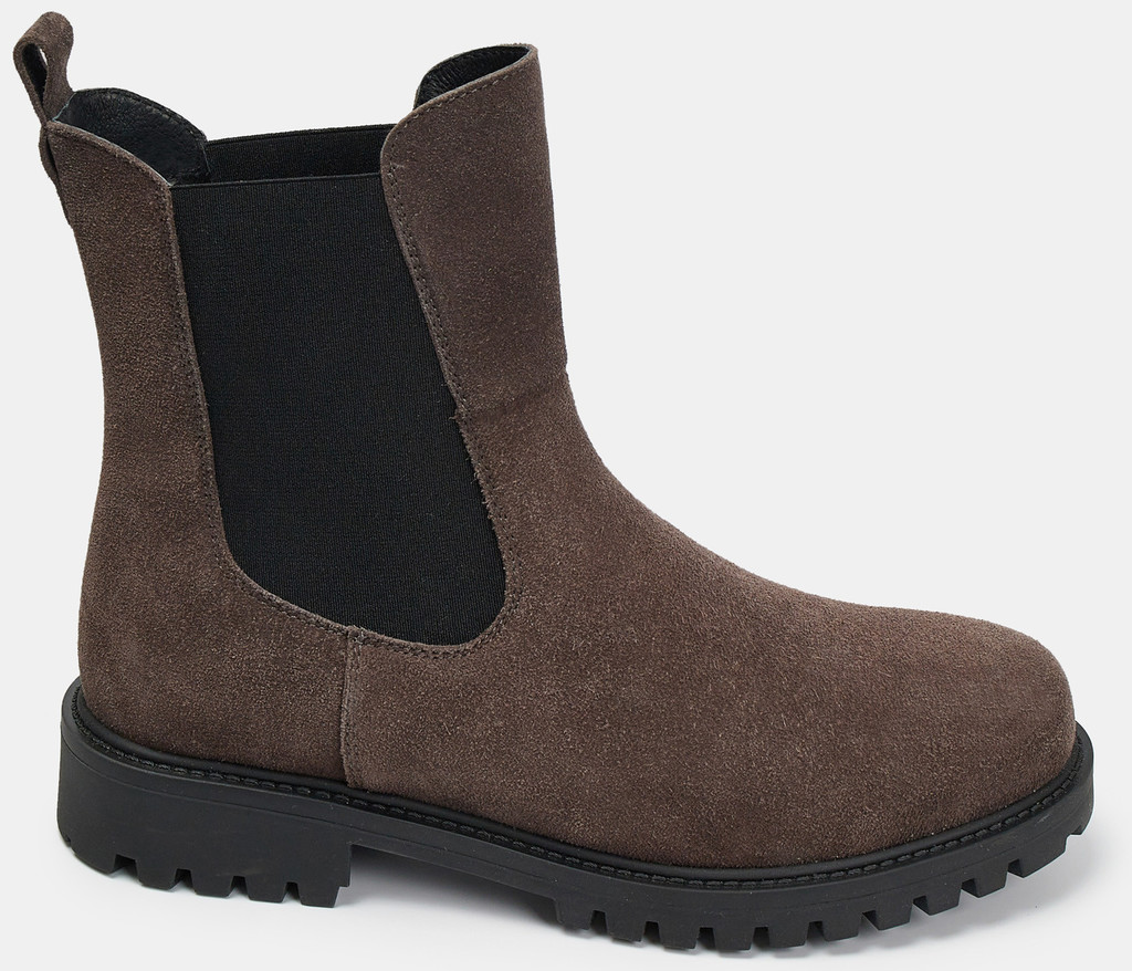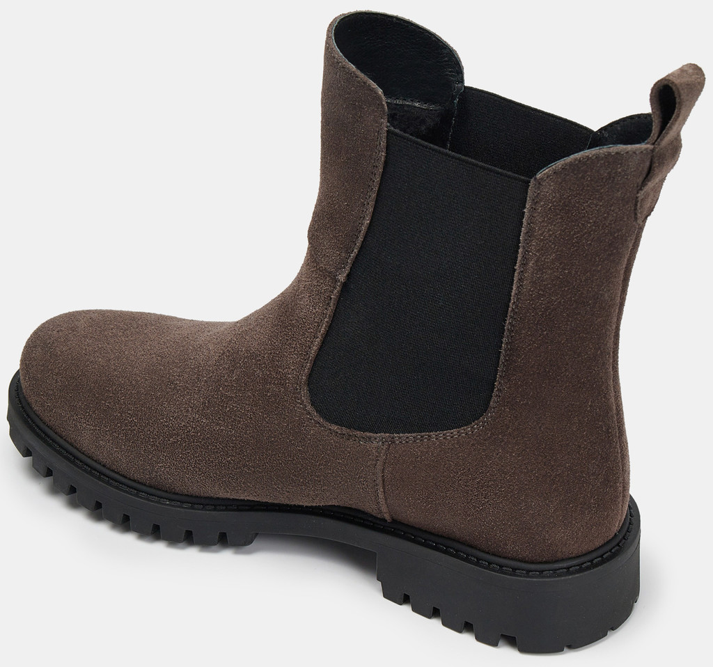 Больше картинок (информации) и таблица размеров на странице. Ботильоны женские серого цвета из натурального спилка с меховыми утеплением. Бархатистый спилок хорошо удерживает тепло и подходит для сухих морозов. Широкие резинки по бокам обеспечивают прилегание и оптимальную посадку на ногах разной полноты. Подкладка и стелька из натурального шерстяного меха согреют ноги при минусовых температурах. Прочная подошва из ТЭП с небольшим каблуком не скользит за счет выраженного протектора. Сочетайте ботильоны челси зимние с укороченными брюками и платьями в стиле casual. Материал верха: Спилок Материал подклада: Мех (шерсть) Материал подошвы: Термоэластопласт