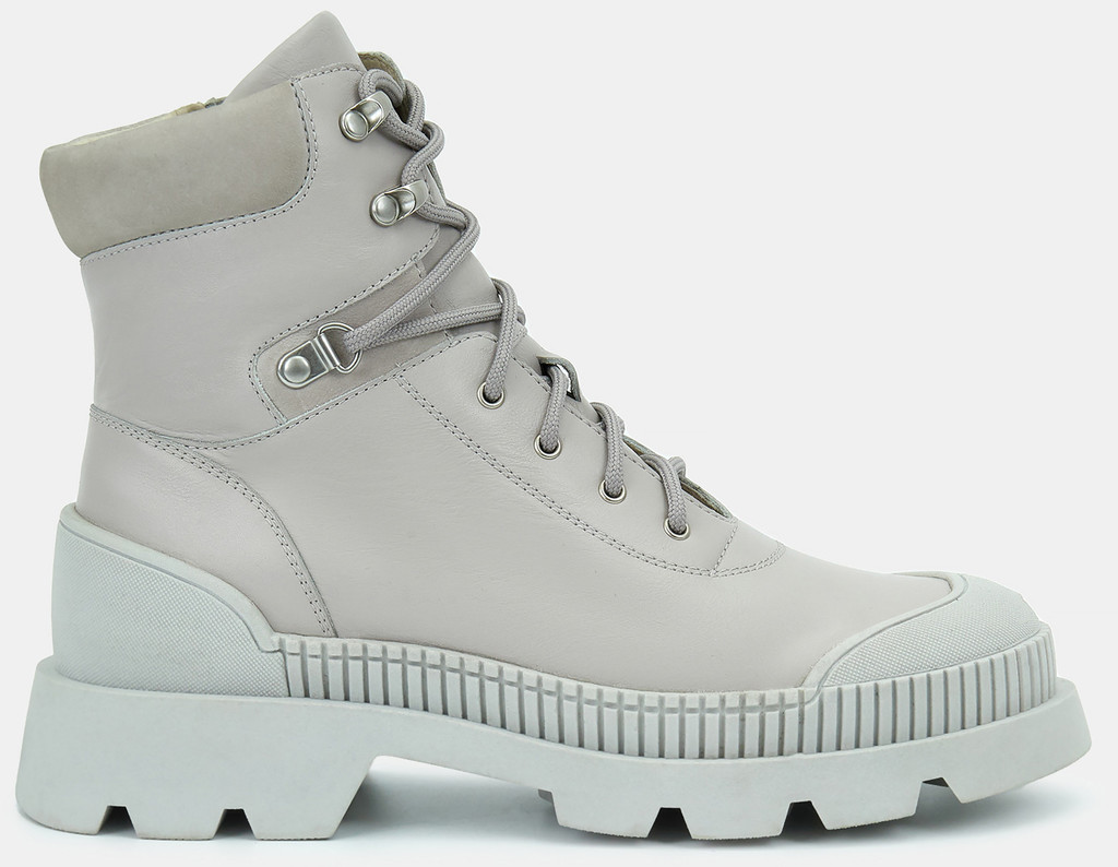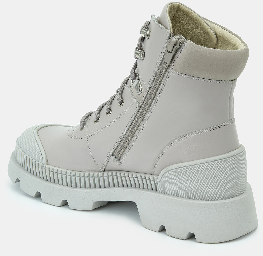 Больше картинок (информации) и таблица размеров на странице. Женские ботинки светло-серого цвета из качественной натуральной кожи и нубука. Подкладка модели выполнена из комбинированного материала - натуральной кожи и технологичного текстиля. Текстильная стелька впитывает влагу и амортизирует. Подошва из гибкого ТЭП комфортна и устойчива к износу. Оригинальный протектор обеспечивает надежное сцепление с любой поверхностью. Городские ботинки отличный выбор на демисезонный период. Модель впишется в активный и повседневный casual образ. Материал верха: Кожа Нубук Материал подклада: Текстиль. Кожа Материал подошвы: Термоэластопласт