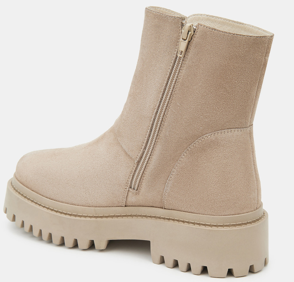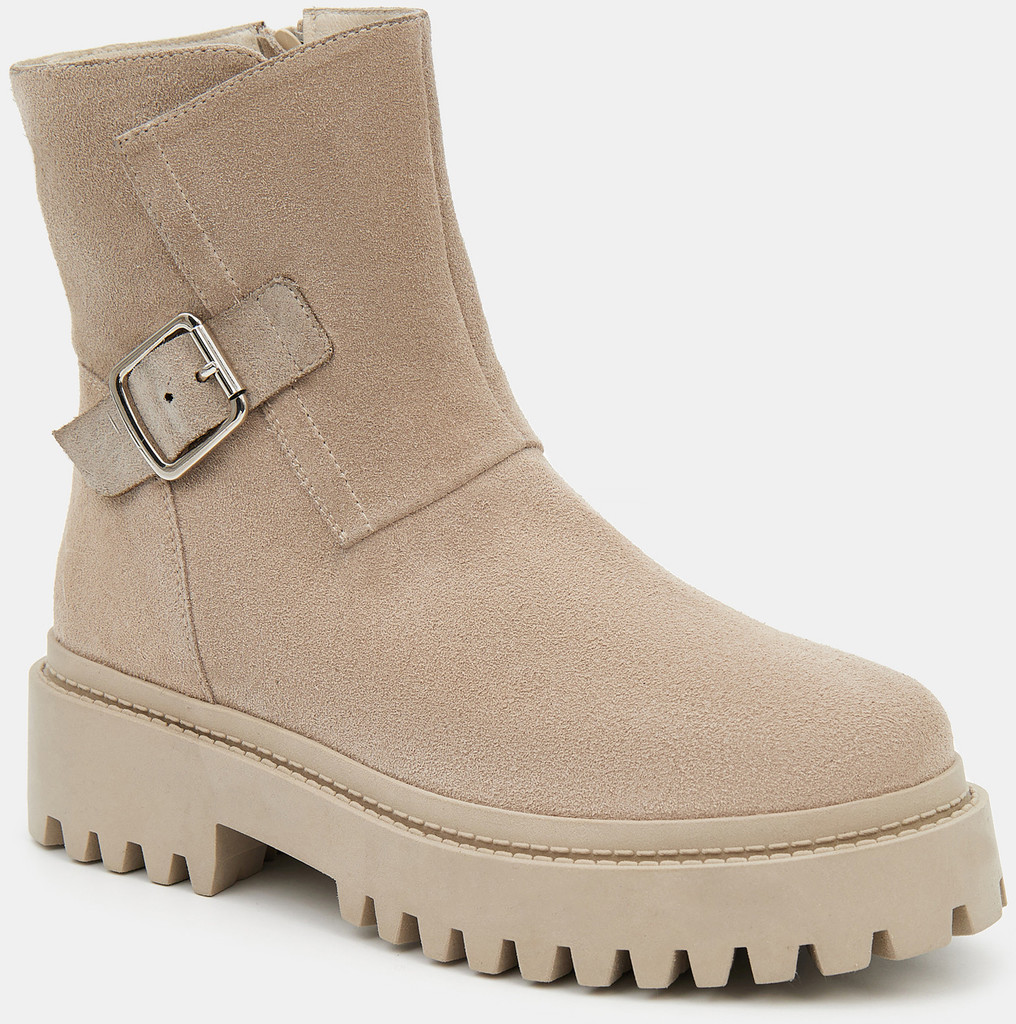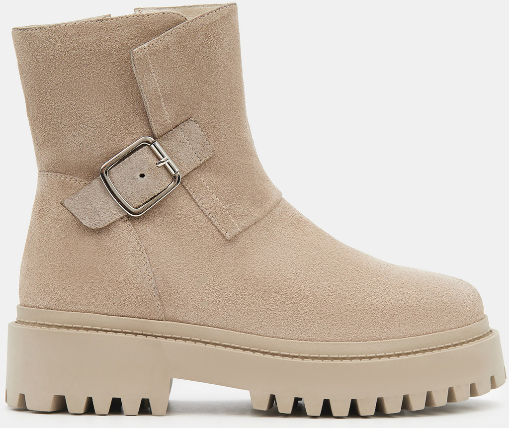 Больше картинок (информации) и таблица размеров на странице. Зимние женские ботинки серо-бежевого цвета. Модель выполнена из качественного спилка. С внутренней стороны имеется надежная молния. Подкладка и стелька утеплены мехом из натуральной шерсти. Устойчивый средний каблук и анатомическая колодка обеспечивают комфорт. Прочная ТЭП подошва отлично амортизирует и держит сцепление на разных поверхностях. Ботинки на высокой подошве дополнят зимний базовый гардероб. Удобная модель под любой casual образ. Материал верха: Спилок Материал подклада: Кожа Материал подошвы: Термоэластопласт