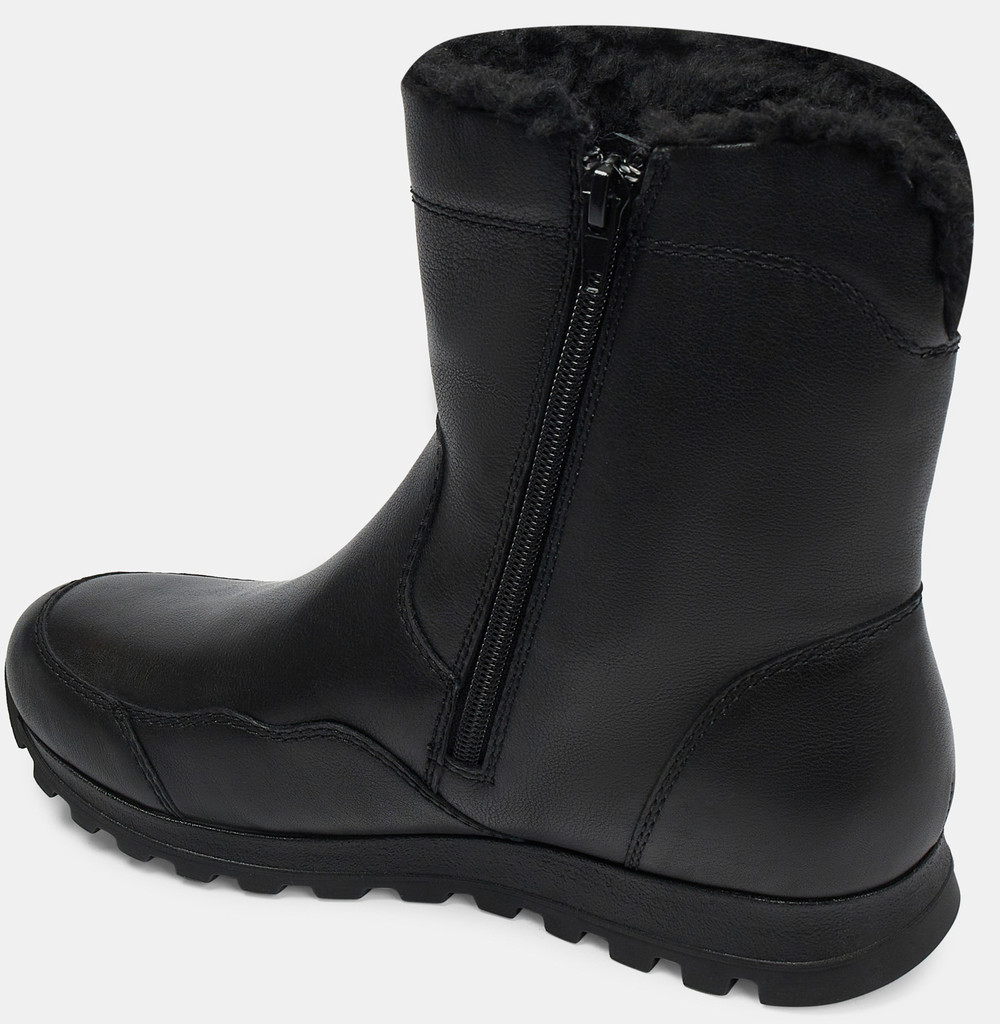 Больше картинок (информации) и таблица размеров на странице. Зимние женские ботинки WALL черного цвета. Верх модели выполнен из качественной гладкой кожи. Удобная боковая молния располагается с внутренней стороны. Подкладка и стелька утеплены натуральным мехом. Подошва из двух видов полиуретана хорошо амортизирует и устойчива к износу. Оригинальный протектор обеспечивает надежное сцепление со снегом и скользкой дорогой. Комфортные ботинки для женщин под любой зимний casual образ. Материал верха: Кожа Материал подклада: Мех (шерсть) Материал подошвы: Термополиуретан