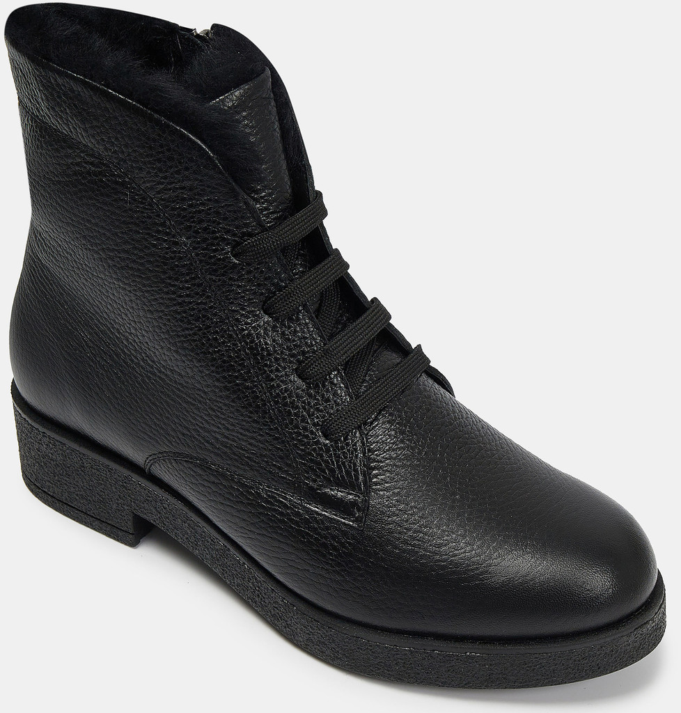 Больше картинок (информации) и таблица размеров на странице. Зимние женские ботинки ALFA произведены из натуральной кожи и оснащены подкладом и стелькой из натурального меха. Низкий каблук обеспечивает устойчивость на скользких дорогах, а изящная форма колодки делает эту модель женственной и элегантной. Необычное решение использовано в шнуровке - возле молнии имеются специальные петли, чтобы шнурок, завязанный вокруг голенища, не мешал снятию и надеванию обуви. Носить такие ботинки можно с чем угодно, так как они универсальны - подходят как к юбкам и брюкам, так и к потертым джинсам и кожаным шт Внутренний материал: Мех натуральный Материал верха: Кожа Материал подклада: Мех натуральный Материал подошвы: ТЭП