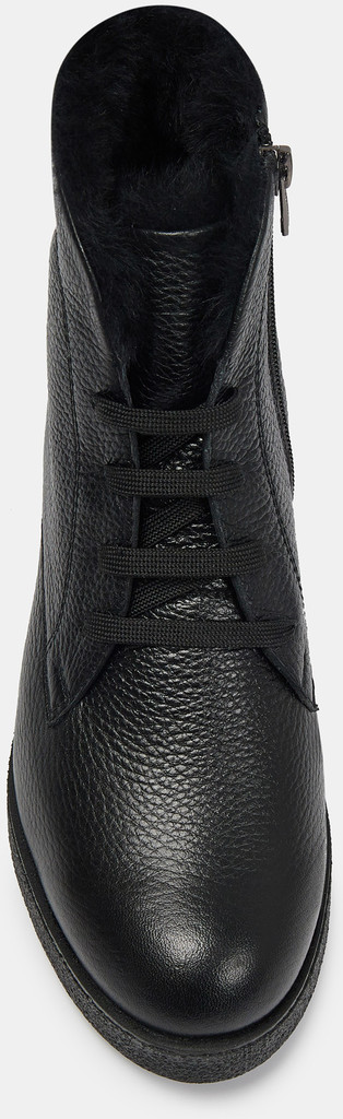 Больше картинок (информации) и таблица размеров на странице. Зимние женские ботильоны черного цвета. Модель выполнена из качественной натуральной кожи. Подкладка и стелька из натурального меха согревают ноги. Устойчивый каблук и анатомическая колодка обеспечивают комфорт. Прочная подошва из гибкой резины отлично амортизирует и держит сцепление на разных поверхностях. Утепленные ботильоны ABRICOT дополнят любой зимний casual гардероб. Материал верха: Кожа Материал подклада: Натуральный мех