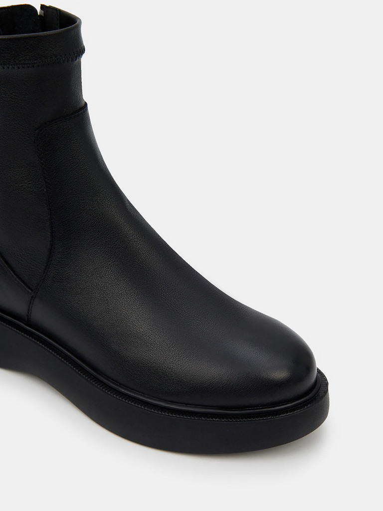 Больше картинок (информации) и таблица размеров на странице. Женские ботинки черно цвета. Верх модели выполнен из натуральной кожи. По бокам присутствуют удобные резиновые вставки. Подкладка из технолично текстиля отлично впитывает влагу. Анатомическая колодка и мягкая стелька обеспечивают нам комфорт. Подошва из легко полиуретана амортизирует и держит сцепление с любой поверхностью. Модные ботинки без шнурков дополнят повседневный деловой стиль и casual образ. Материал верха: Натуральная кожа Материал подклада: Текстиль Материал подошвы: Полиуретан