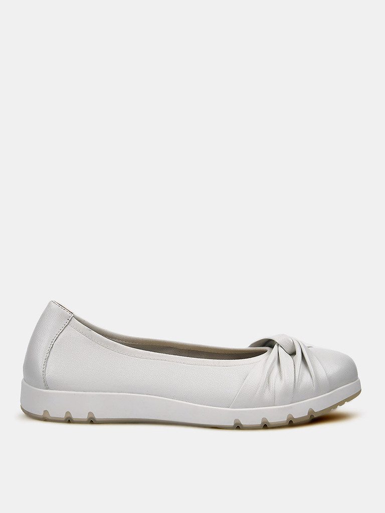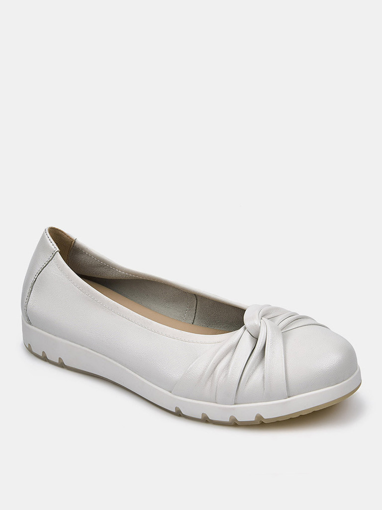 Больше картинок (информации) и таблица размеров на странице. Балетки женские перламутрового цвета на широкую ногу. Верх и стелька из натуральной кожи позволяют ногам дышать. Подкладки нет, поэтому балетки отлично садятся по ноге и подходят в том числе для жарких дней. Подошва из полимерного материала прочная и устойчивая к истиранию. Носите белые балетки с джинсами, элегантными брюками и офисными платьями. Материал верха: Натуральная кожа Материал подклада: Без подкладки Материал подошвы: Полимерный материал