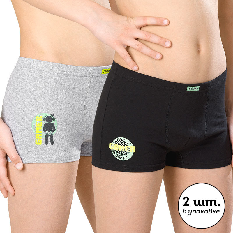 Состав: низ: 93%хлопок 7%эластан, низ2: 93%хлопок 7%эластанОписание: Pelican - производитель нижнего белья, представляет набор трусов-боксеров для мальчика, состав 93% хлопок, 7% эластан. Если вы ищет... Показать описаниее качественное нижнее белье для вашего подростка, то этот набор трусов точно понравится вам и вашему ребенку. Боксеры для мальчика - это набор подростковых трусов из 2-х штук, выполнены из ткани с высоким содержанием хлопка. Хлопковые трусики отлично пропускают воздух, а эластан в составе обеспечивает эластичность и долговечность. Качественная ткань и анатомически правильный крой гарантируют комфортную посадку нижнего белья на теле, а мягкая широкая резинка в поясе не давит и не перекручивается. Трусы-шортики сохраняют отличную форму в течение долгого времени, даже после многочисленных стирок. В комплект входят облегающие детские семейники, в двух вариантах расцветки: светло-сером и черном цвете с прикольным принтом и надписью. Молодежные труселя для парней полосатые и с рисунком выполнены в спортивном стиле, в виде обтягивающих шорт. Такие транки для подростка предназначены для повседневного ношения, как нательное белье под одежду в школу или детский сад. Трусишки имеют комфортную классическую посадку, поэтому в них очень удобно заниматься спортом и физкультурой, бегом и каратэ, баскетболом и футболом. Хипстеры из коттона подойдут как для малыша, так и на мальчика подростка. Нижнее белье с анатомическим разделением из тонкого хлопка и плоскими швами позволит Вашему ребенку чувствовать себя максимально комфортно в течение всего дня в любое время года будь то лето или осень, зима или весна. Удлиненные плавки облегающие предназначены для детей в возрасте 1 и 2, 3 и 4, 5 и 6, 7 и 8, 9, 10 и 11 лет. Эту модель трикотажных бельевых трусов рекомендовано стирать при температуре не выше 30 °C, без предварительного замачивания, с изнанки. Не забывайте о выборе правильного размера. Используйте таблицу размеров на фотографии, чтобы выбрать подходящий вариант для вашего мальчика.