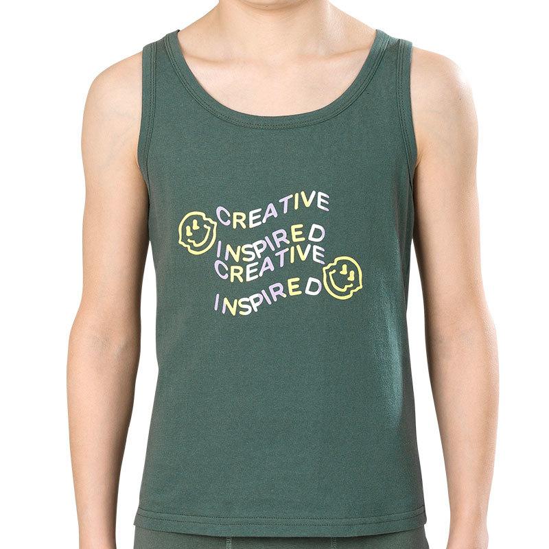 Состав: 100%хлопокОписание: Выбирая бельё для своего ребёнка, любая мама заботится о его качестве и о том, чтобы ребёнку в нём было комфортно. Наша майка из 100% хлопка для мальчика — именно то, что в... Показать описаниеам нужно! Благодаря натуральному составу ткани модель приятна на ощупь, прекрасно пропускает воздух — кожа ребёнка дышит. Изделие правильного кроя — комфортно садится по фигуре, ребёнку удобно на протяжении всего дня. Такую майку можно носить под джемпер или свитер в качестве нательного белья. Горловина и проймы обработаны в тон — они не растягиваются, сохраняют великолепный внешний вид надолго. Изделие выполнено в трендовом цвете шалфея. Темно-зеленый цвет красивый и практичный. По переду майку украшает забавный принт с позитивным настроением. Перевод: "Вдохновленный творчеством". Принт эластичный и прочный — прекрасно переносит частые стирки. Эта модель универсальна, подходит для повседневной носки, летнего отдыха и как одежда для дома. Станет замечательным подарком, который способен вызвать искреннюю радость у каждого ребёнка, оставив незабываемые воспоминания о любом празднике и принося массу удовольствия каждый день.