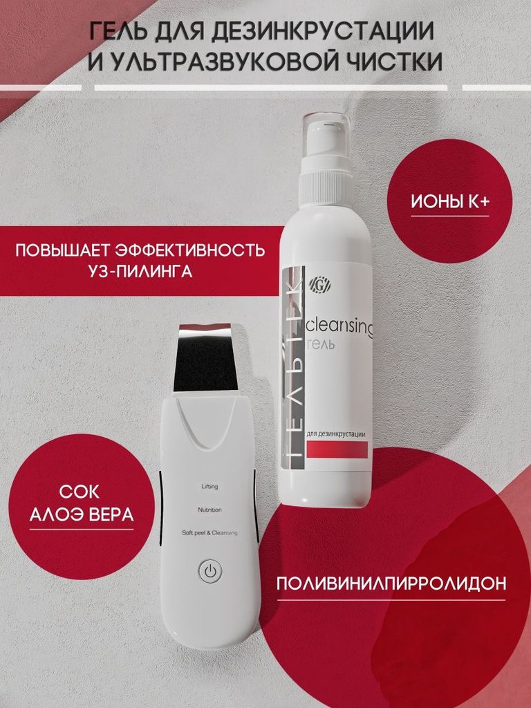 Гель для дезинкрустации является ионизированным гелем для проведения процедуры при помощи гальванического тока. В состав препарата введены такие компоненты, как поливинилпирролидон , сорбирующий загря... Показать описаниезнения, и сок Aloe Vera, известный своей противовоспалительной активностью Гель подходит также для ультразвукового пилинга и может использоваться в комплексной чистке в качестве геля для холодного распаривания. Активные ингредиенты: Aloe Vera, поливинилпирролидон, ионы К+ Применение: гальванизация, ультразвуковой пилинг, холодное распаривание. Способ применения: Показания: расширенные поры, открытые и закрытые комедоны, угревая болезнь. Область применения: гальванизация, ультразвуковой пилинг, холодное распаривание Рекомендации по использованию аппаратов: WELSS WS 7030, WELSS WS 7040, WELSS WS 7050 Методика работы: — при дезинкрустациипри помощи гальванического тока: гель нанести на кожу и работать с отрицательного полюса 7-10 минут. Полностью удалить остатки геля. Далее 1-2 минуты работать с положительного полюса по чистой воде. Расход геля 5-7 мл на процедуру — при ультразвуковом пилинге гель нанести на очищенную кожу и работать по нему лопаточкой в соответствии с инструкцией к прибору WELSS WS 7050. Полностью удалить остатки геля. Расход геля 7-10 мл на процедуру — при холодном распаривании после демакияжа нанести гель плотным слоем на кожу на 15 мин и накрыть пленкой. Удалить излишки геля. Расход геля 7 мл на процедуру. Состав: Вода очищенная, Глицерин, Пропиленгликоль, Жермабен II, Поливинилпирролидон, Сок Алоэ Вера,Карбопол, Гидроксид калия, Хлорид калия, Трилон, Отдушка.