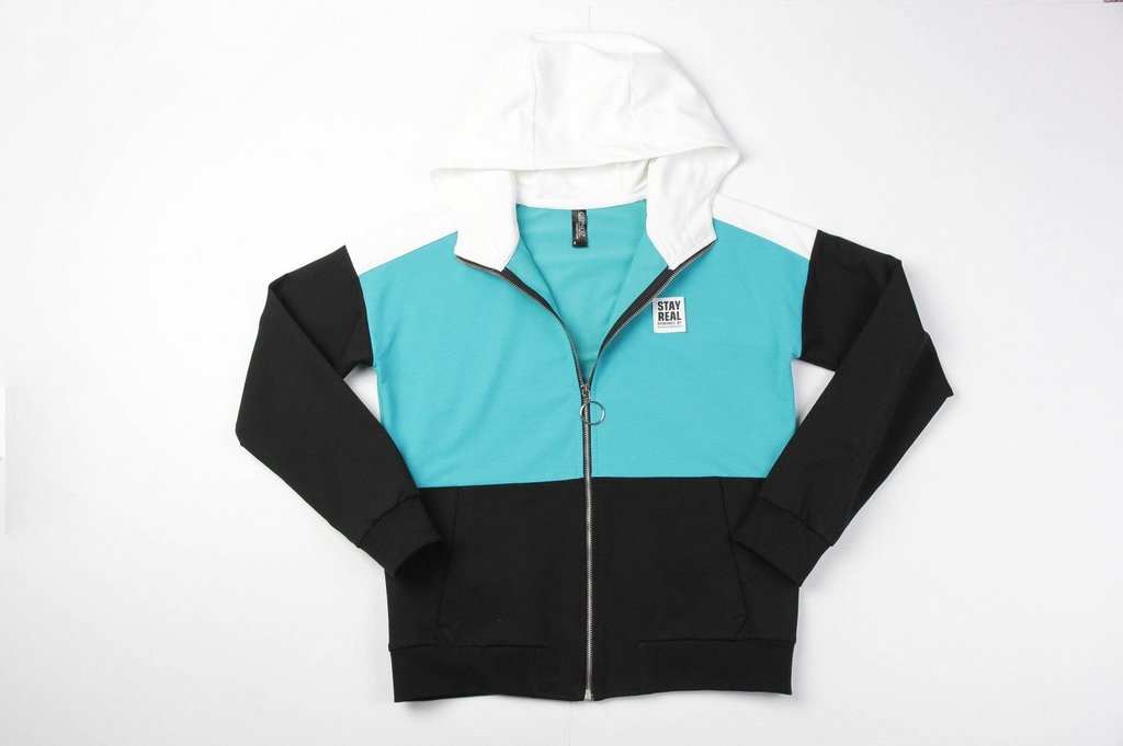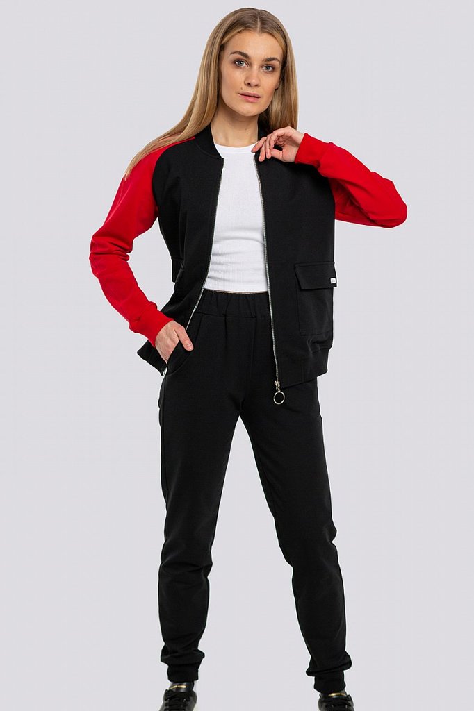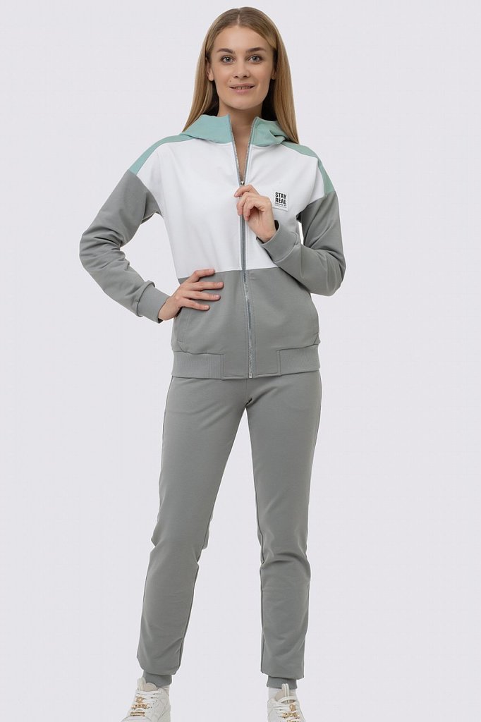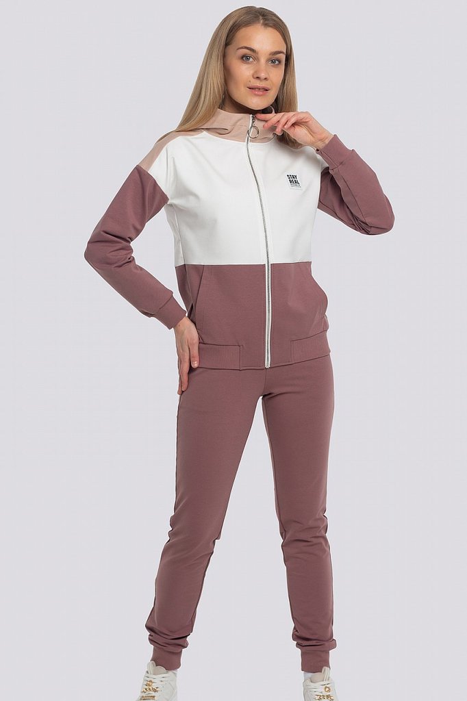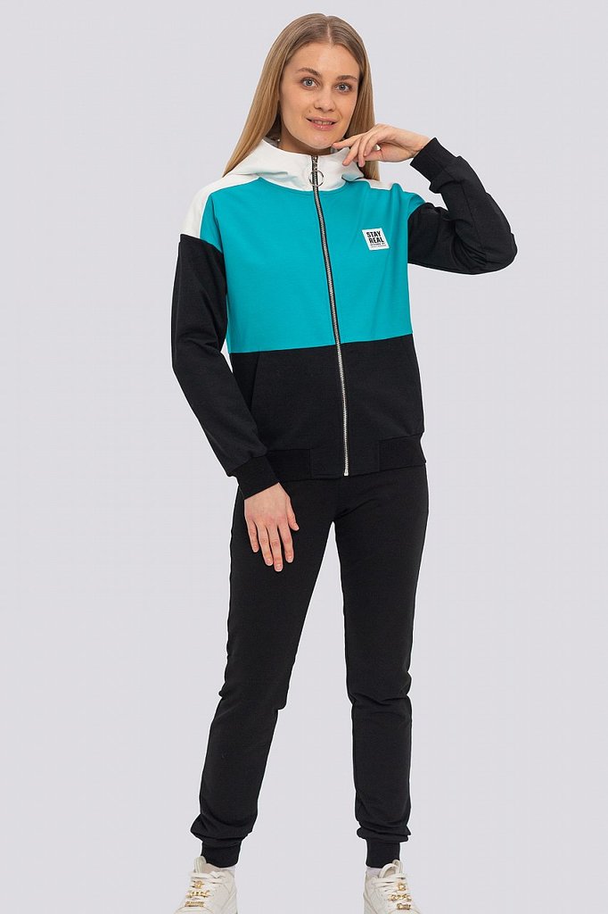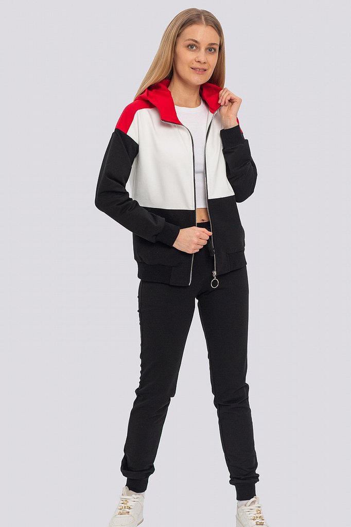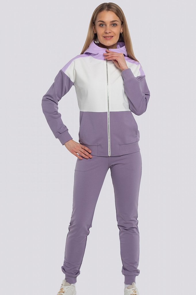 Заниматься спортом, гулять, общаться с друзьями — эти действия должны присутствовать в жизни каждой активной леди, поэтому модный трикотажный костюм в спортивном направлении обязан присутствовать в ва... Показать описаниешем гардеробе безоговорочно. Костюм состоит из олимпийки и брюк. Яркость костюму придает оригинальное сочетание разных цветов и контрастной тесьмы. Олимпийка с капюшоном, центральная застежка на молнию. Спереди карманы с листочкой. Низ олимпийки и низ рукава обработаны поясом и манжетами. Брюки свободные, пояс брюк на резинке, низ обработан манжетами. Состав трикотажа: 75% хлопок, 20% полиэстер, 5% спандекс.