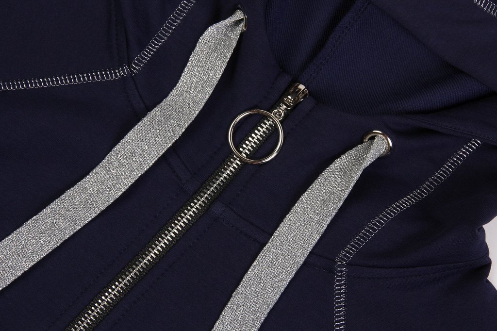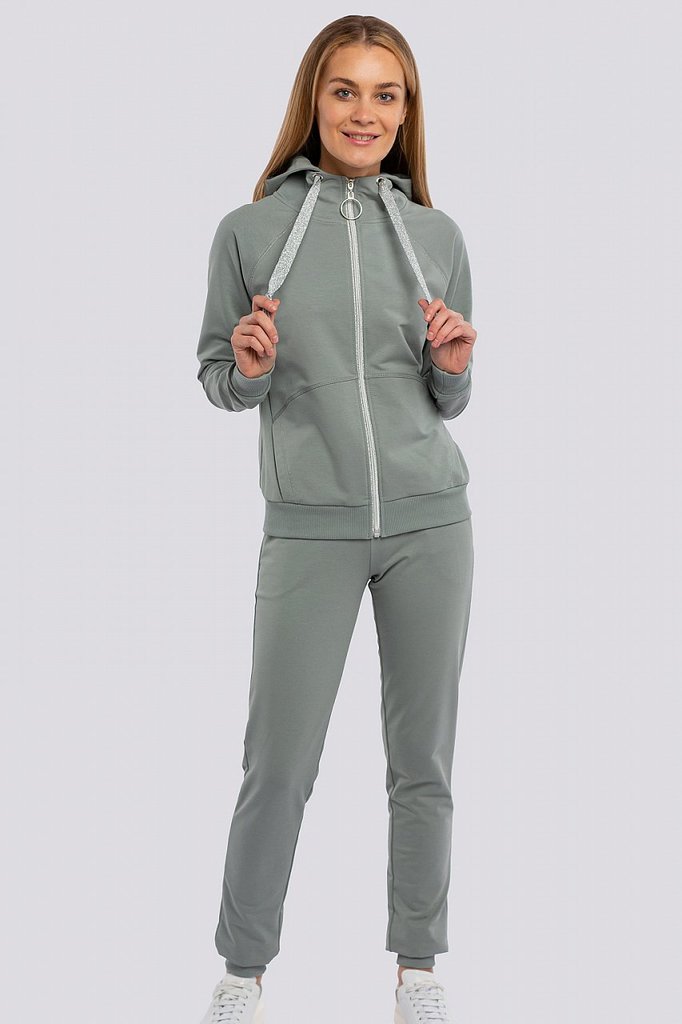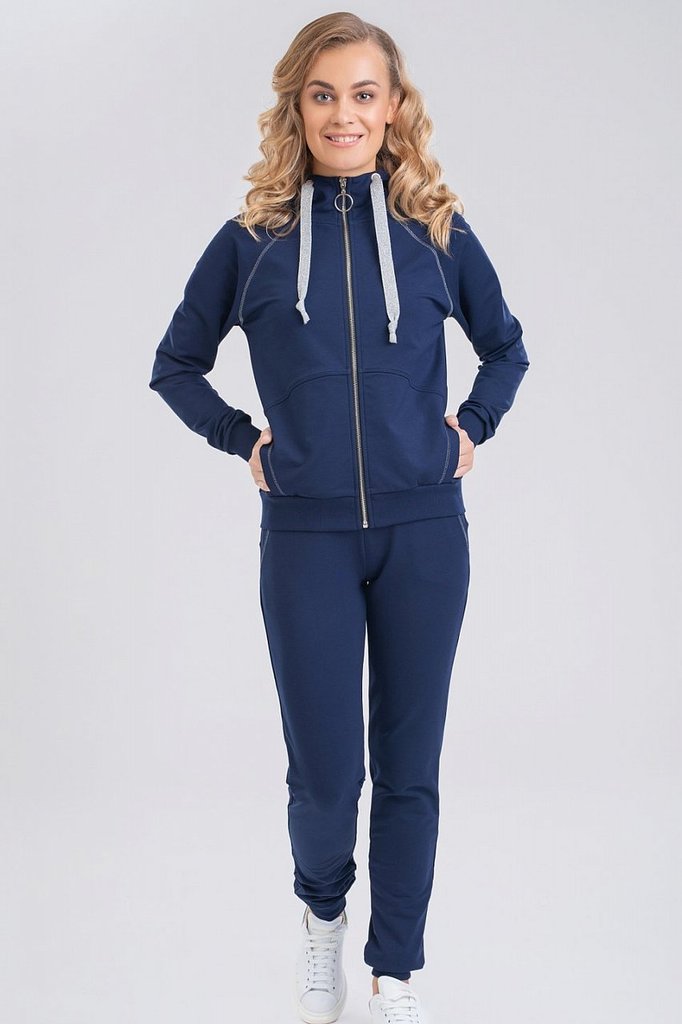 Каждая девушка мечтает выглядеть привлекательно в любой ситуации. Выглядеть стильно и красиво можно в самом обычном спортивном костюме. Главное найти костюм, подчеркивающий ваше хорошее чувство вкуса ... Показать описаниеи индивидуальность. Незаменимый вариант для занятий фитнесом, активным отдыхом или в поездках, для прогулки и неофициальных мероприятий в городе. Толстовка на молнии с карманами для мелочей и небольшим капюшоном. Швы отстрочены декоративной строчкой серебристыми нитками. Брюки слегка зауженные книзу и заканчиваются манжетами. Оригинальные строчки серебристыми нитками добавляют женственности. Состав трикотажа: 75% хлопок, 20% полиэстер, 5% спандекс.